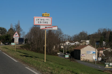 Pyrénées, France, 2023-12-27. De nombreux panneaux d'entrée ou sortie de villes et villages se retrouvent accrochés à l'envers : les agriculteurs des syndicats FDSEA et JA (Jeunes Agriculteurs) mènent depuis plusieurs semaines une opération "On marche sur la tête", pour dénoncer les taxes sur le fuel agricole, les délais de versements européens de la Politique Agricole Commune (PAC), mais aussi les normes toujours plus importantes et le prix des molécules des intrants phytosanitaires.