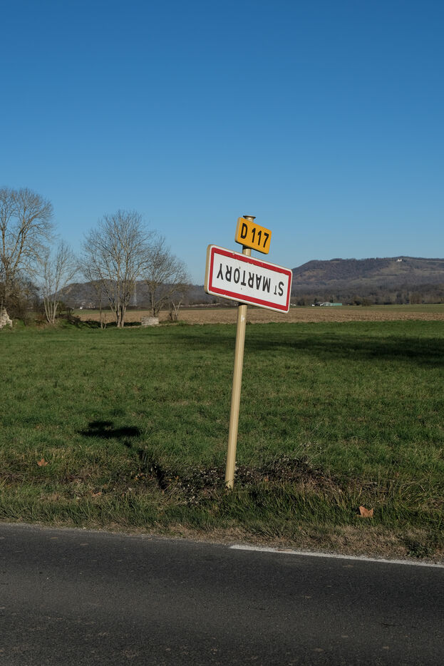 Pyrenees, France, 2023-12-27. Many signs at the entrances and exits of towns and villages are hanging upside down: for several weeks now, farmers belonging to the FDSEA and JA (Jeunes Agriculteurs) unions have been conducting an operation called "On marche sur la tête" ("We're walking on our heads"), to denounce the taxes on agricultural fuel, the delays in European payments under the Common Agricultural Policy (CAP), but also the ever-increasing standards and the price of phytosanitary input molecules.
