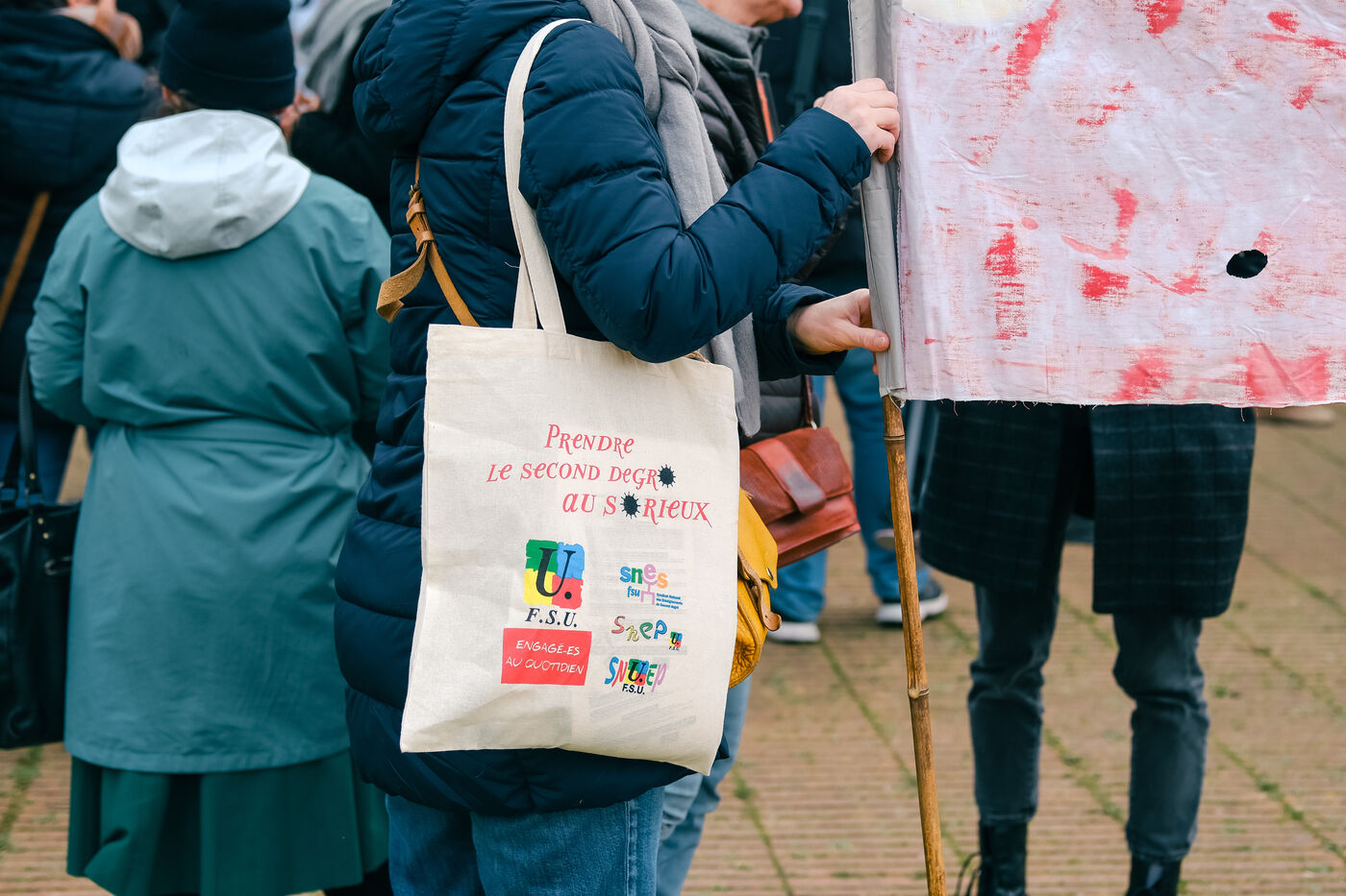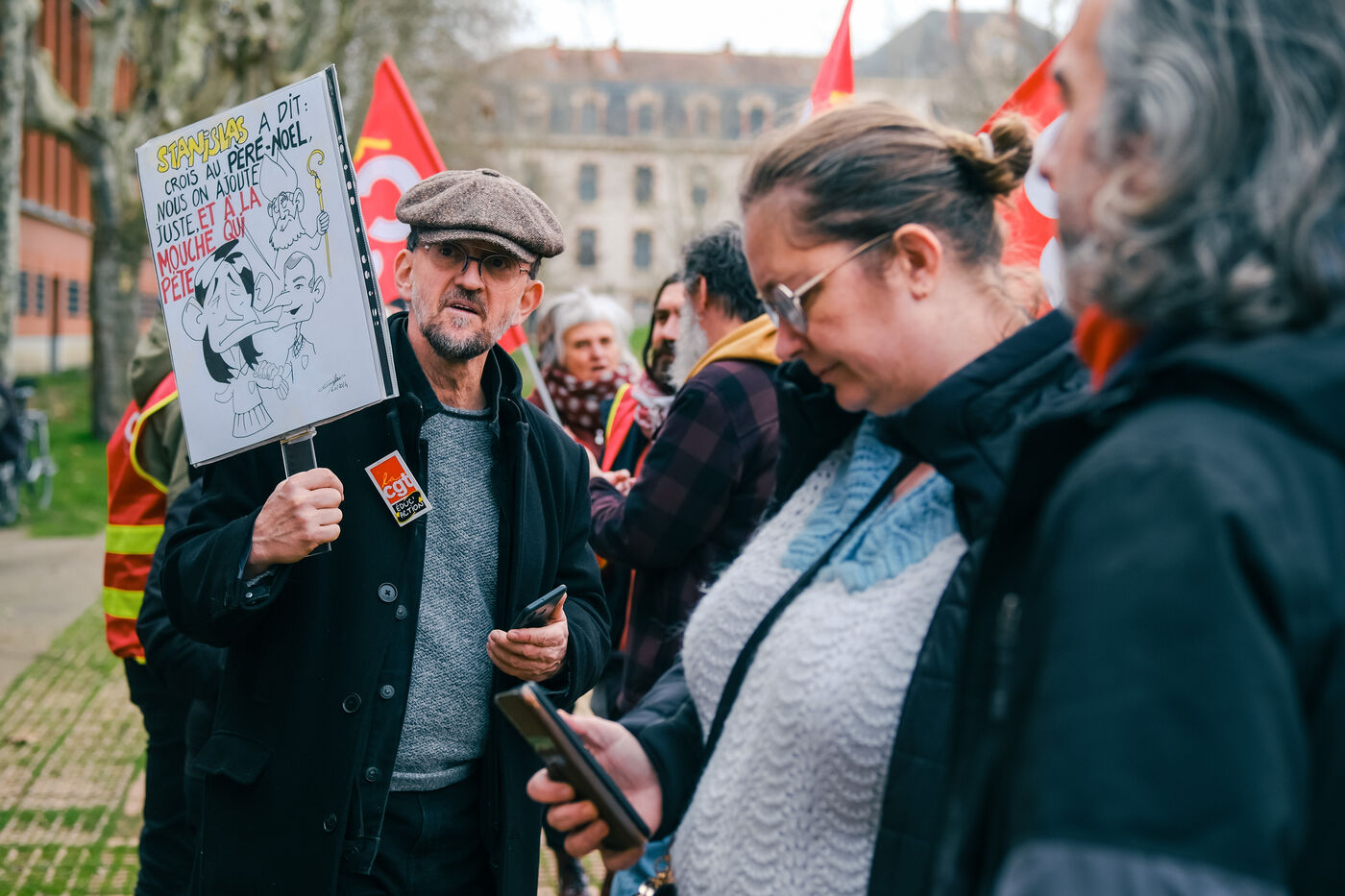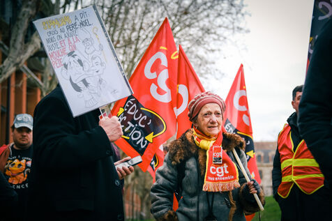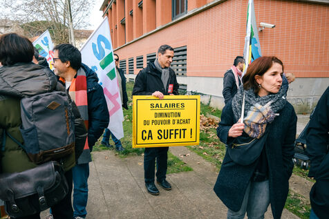 Toulouse, France, 2024-02-06. A week after their massive street protests, teachers held another day of strike action to protest against level groups in French and maths, and above all against their new Minister of Education. In Toulouse, they gathered in front of the rectorat before handing out leaflets to motorists.