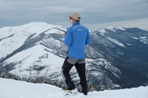 Superbagnières, France, 2024-03-04. La préfecture de la Haute-Garonne et la compagnie républicaine de sécurité (CRS) Pyrénées ont organisé un exercice de secours en montagne, qui a fait intervenir conjointement les forces de Police et de Gendarmerie. Simulant une avalanche avec des skieurs et surfeurs portés disparus, l'opération, qui a lieu chaque année, a permis de projeter des personnels de secours, pisteurs, maître-chien, ou encore hélicoptère, et de retrouver quatre personnes (deux humains et deux mannequins).