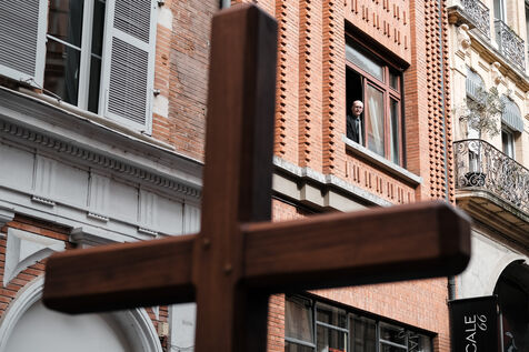 Catholic procession of the Stations of the Cross in the city streets for Good Friday in Toulouse, southwest France on March 29, 2024.