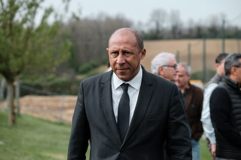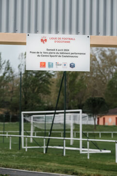 Laying of the 1st stone of the Occitanie Football League Sports Centre in Castelmaurou, south-west France, on April 6, 2024. In 2025, the new building will house a training centre for managers, trainers and volunteers, a men's and women's centre of excellence (Pole Espoir), as well as training courses and football matches.