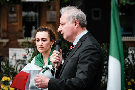 Rally organized by the Souliranation association against the death sentence of Iranian rapper Toomaj Salehi in Toulouse, southwest of France, on May 5, 2024.