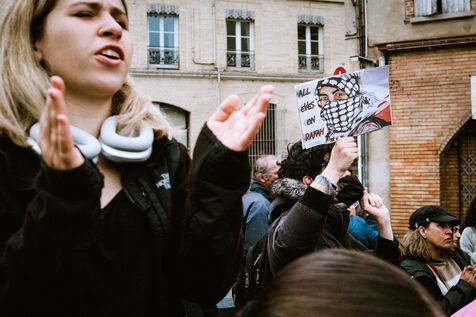 Demonstrators gather in support of the Palestinian population of Gazah after deadly Israeli fire on a Rafah displaced persons camp, in Toulouse, southwest of France, on May 27, 2024.