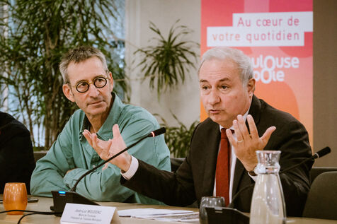 Conférence de presse pour présenter le nouveau spectacle de rue de la compagnie La Machine, qui se tiendra à la fin du mois d'octobre, à Toulouse, sud-ouest de la France, le 1er octobre 2024. En 2018, une première représentation avait permis pendant trois jours de réunir près d'un million de personnes dans les rues de la ville, autour de machines géantes animées telles que le Minotaure fait de bois et de métal.
