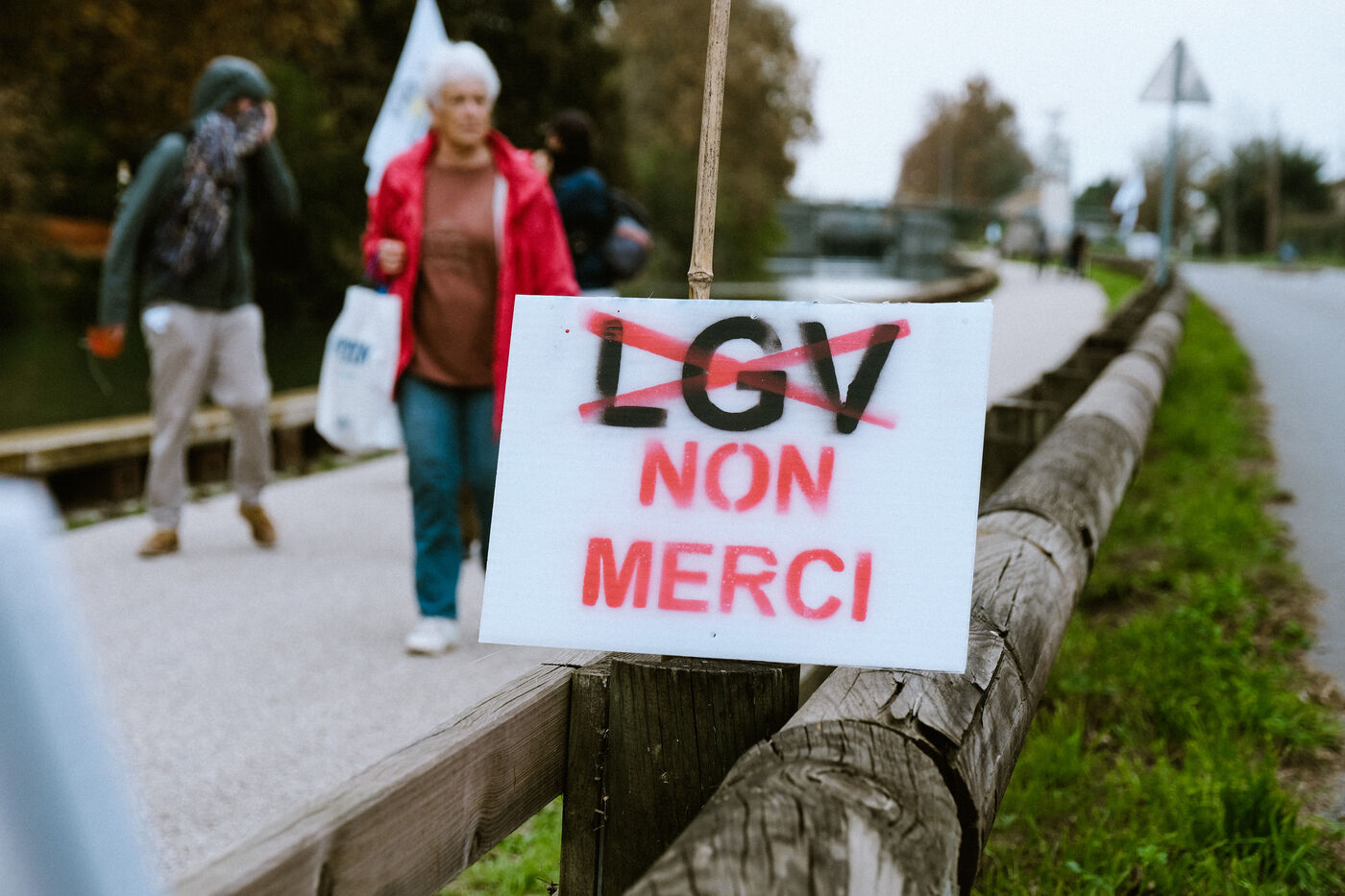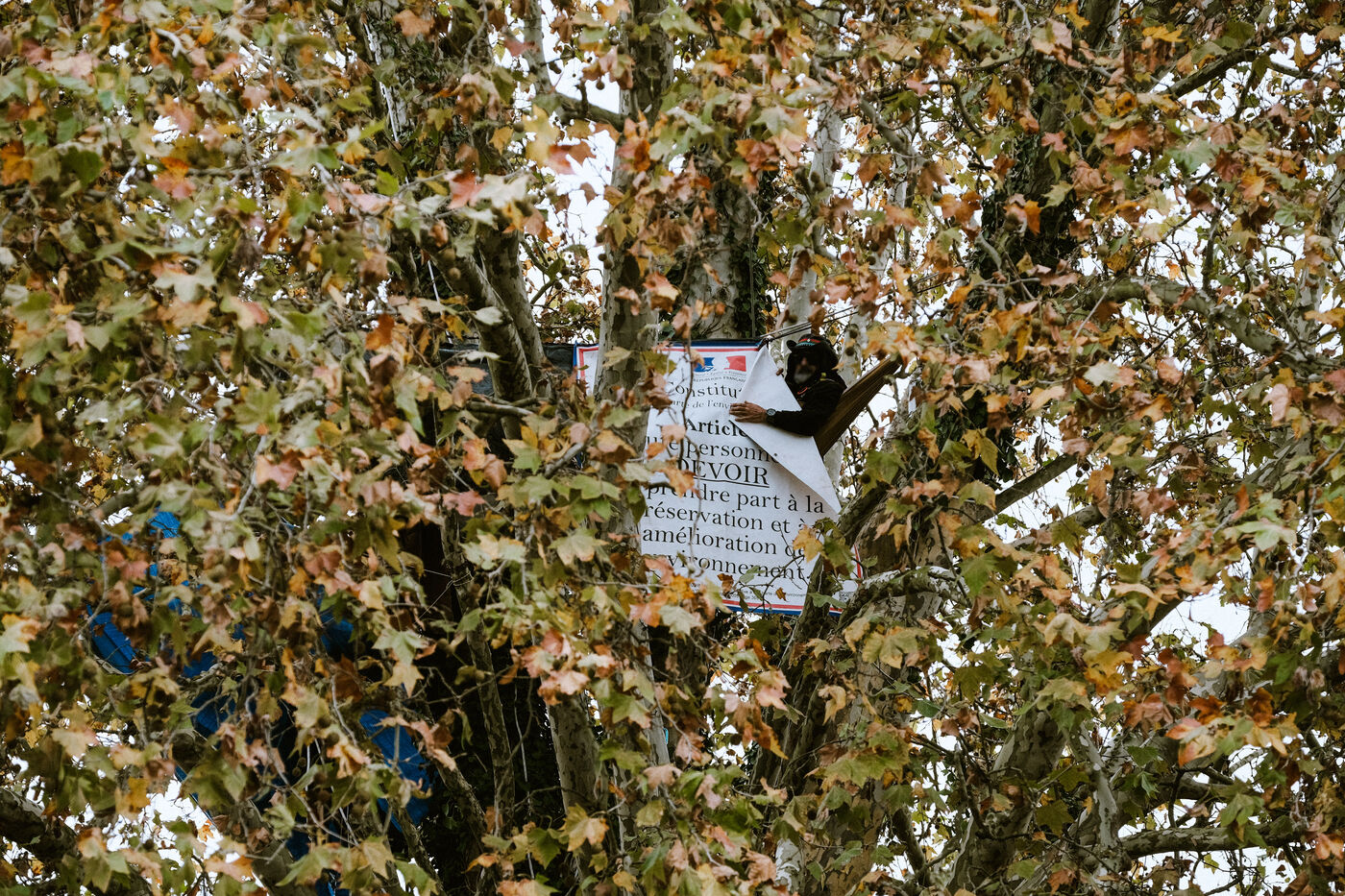 Opposition to the cutting of trees bordering the Lateral Canal to the Garonne river and to accommodate the future High-SpeedRail Line (LGV) linking Toulouse to Bordeaux in Saint-Jory, southwest of France on November 9, 2024.