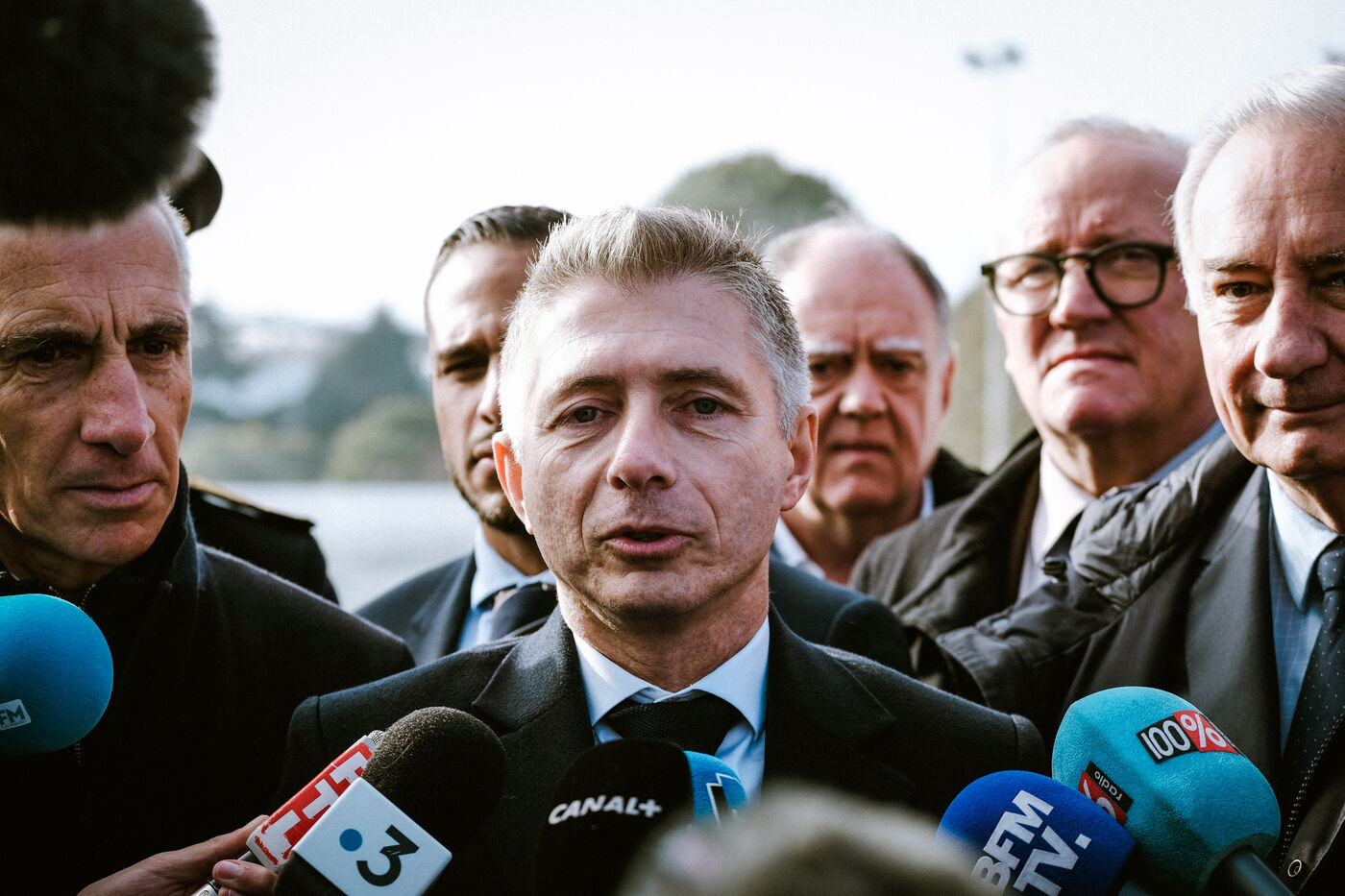 Visite du Ministre des Sports Gil Avérous du futur chantier de la Cité de la Natation et du club historique du TOEC à Toulouse, sud-ouest de la France le 15 novembre 2024.