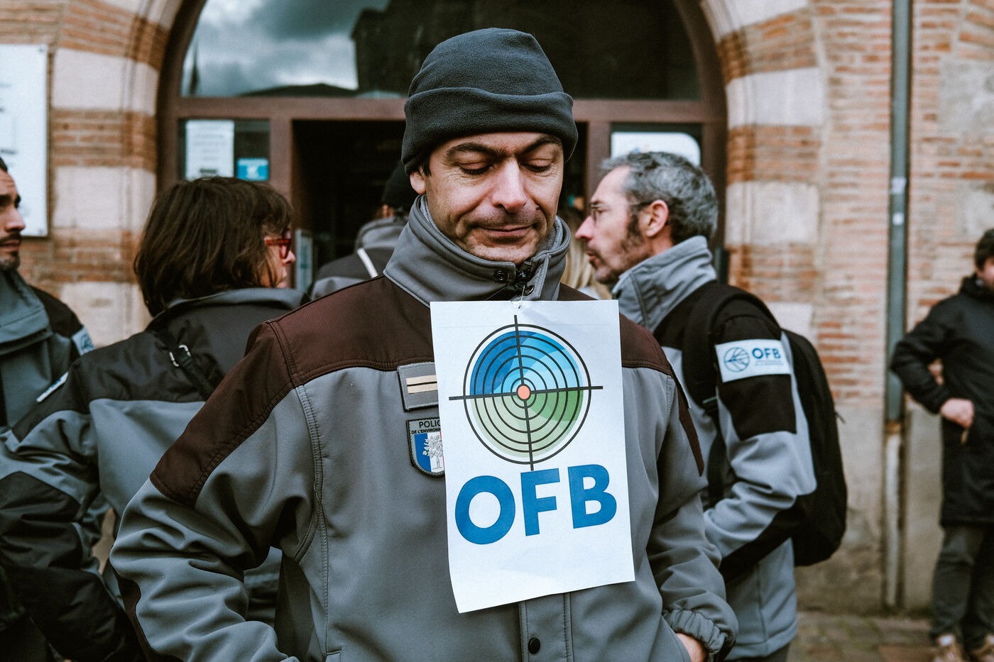 Gathering of striking agents of the French Office for Biodiversity (OFB) whose action is being questioned by political leaders and agricultural unions in Toulouse, southwest France on January 31, 2025.