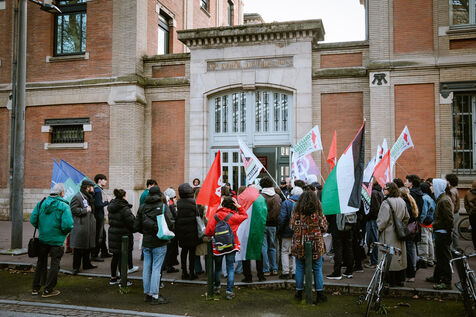 Manifestation pour la libération de Georges Abdallah devant Sciences Po et contre les partenariat universitaires avec Israël à Toulouse, sud-ouest de la France le 13 février 2025.