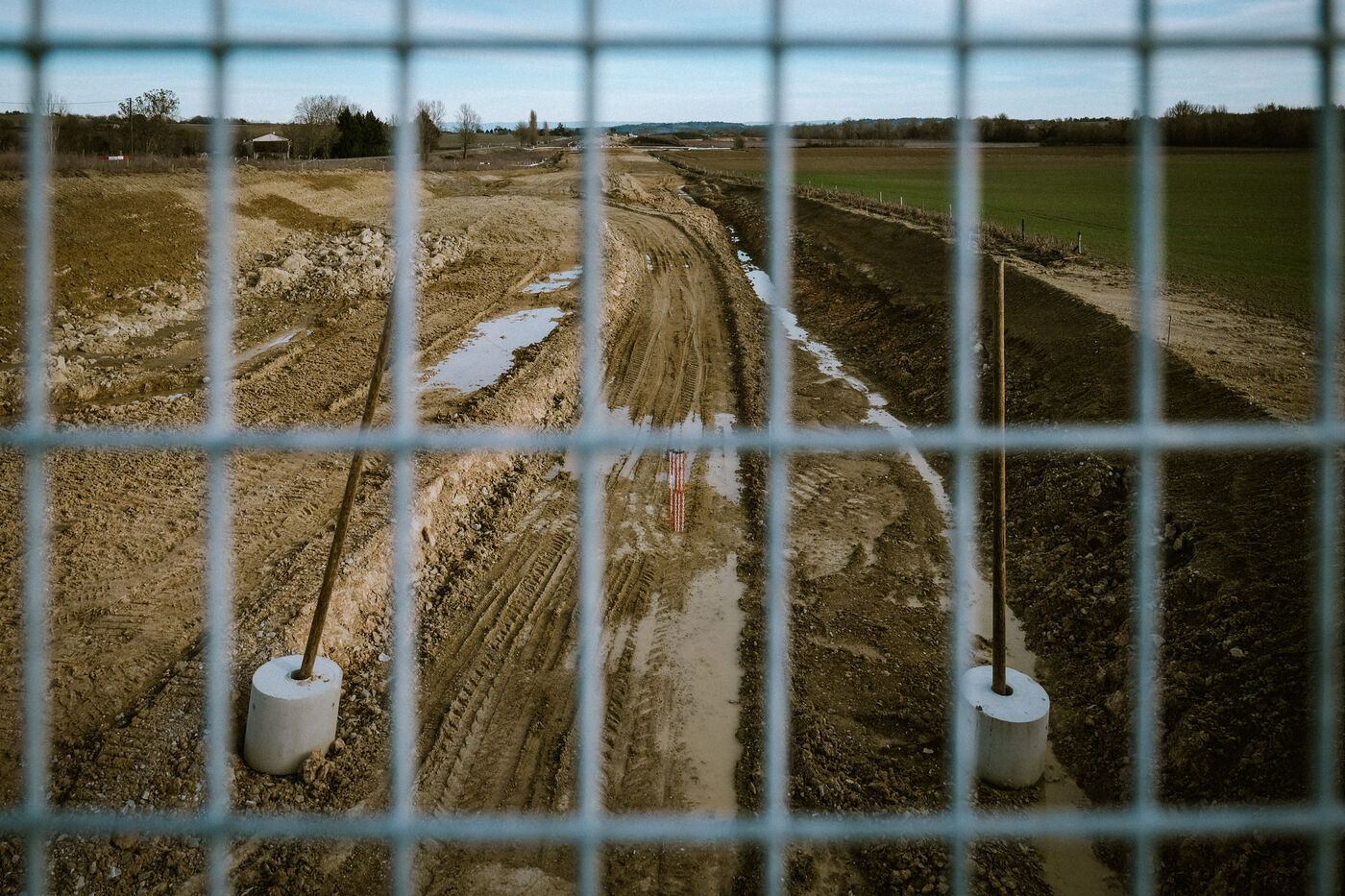 Vue du chantier de l'autoroute Toulouse-Castres A69 contestée depuis son démarrage par de nombreux opposants écologistes dans le Tarn à Puylaurens, sud-ouest de la France le 15 février 2025.