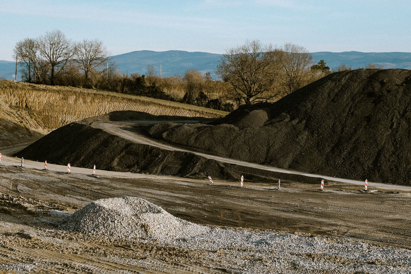 View of the construction site of the Toulouse-Castres A69 motorway, contested since its start by many environmental opponents in the Tarn in Puylaurens, southwest of France on February 15, 2025.