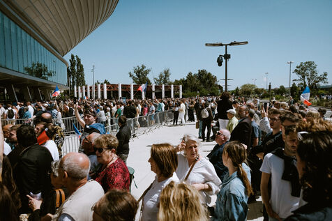 Meeting du parti d'extrême droite Rassemblement National pour le traditionnel 1er Mai un mois après la condamnation d'inéligibilité de sa leader Marine Le Pen et un an avant les prochaines élections municipales à Narbonne, sud de la France le 1er mai 2025.