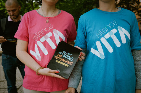 Rally of members of the pro-life association Alliance Vita against the end-of-life bill legalizing assisted dying (otherwise known as euthanasia or assisted suicide) and to demand more care in Toulouse, southwest France on May 12, 2025.