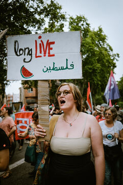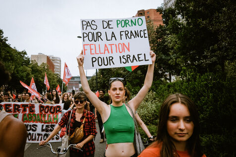 National demonstration called by trade unions (CGT, CFDT, Unsa, Solidaires and FSU) in support of the Palestinian people for an immediate ceasefire in Gaza and for access to humanitarian aid in Toulouse, southwest France on June 14, 2025.