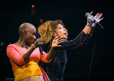 The Beninese diva accompanied by Brazilians Flavia Coelho, Karla Da Silva and Puma Camillê at the Rio Loco festival has been celebrating world music for 30 years on the banks of the Garonne in Toulouse, southwest France, on June 15, 2025.