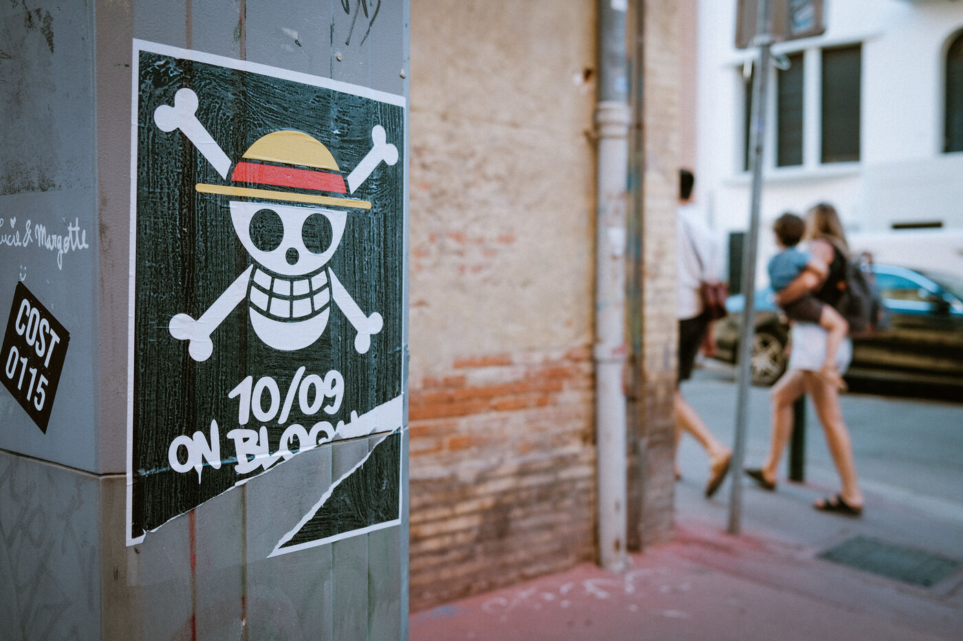 General assembly and posters stuck in the street on the eve of the vote of confidence in the Bayrou government and a few days before the strikes and demonstrations planned for September 10 under the slogan "Block Everything" in Toulouse, southwest of France on September 7, 2025.