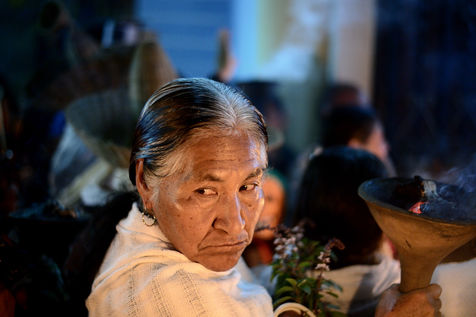 The tradition of the Day of the Dead, which is spread throughout Mexico, has its own particularities depending on the region. In the Sierra Mazateca the coming back of the dead lasts a week and the altars are erected inside the houses. For the Mazatecs, the souls of the deceased return in the form of Huehuentones, masked and magical characters who come to honour the dead of each house by dancing in front of the altars. Each family offers food and drinks to the Huehuentones who cannot be seen without their masks.