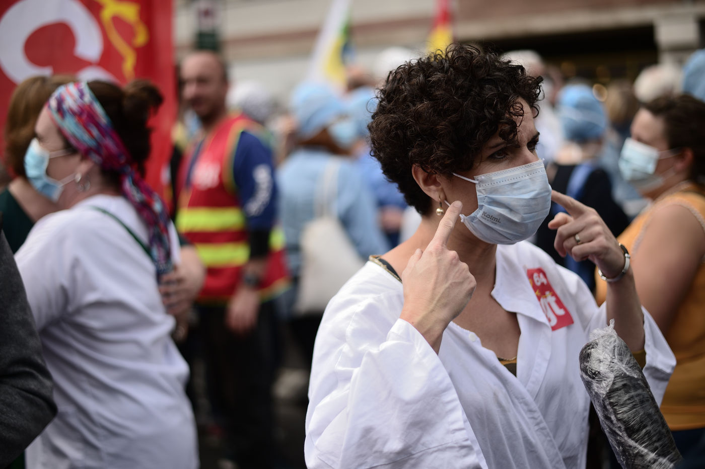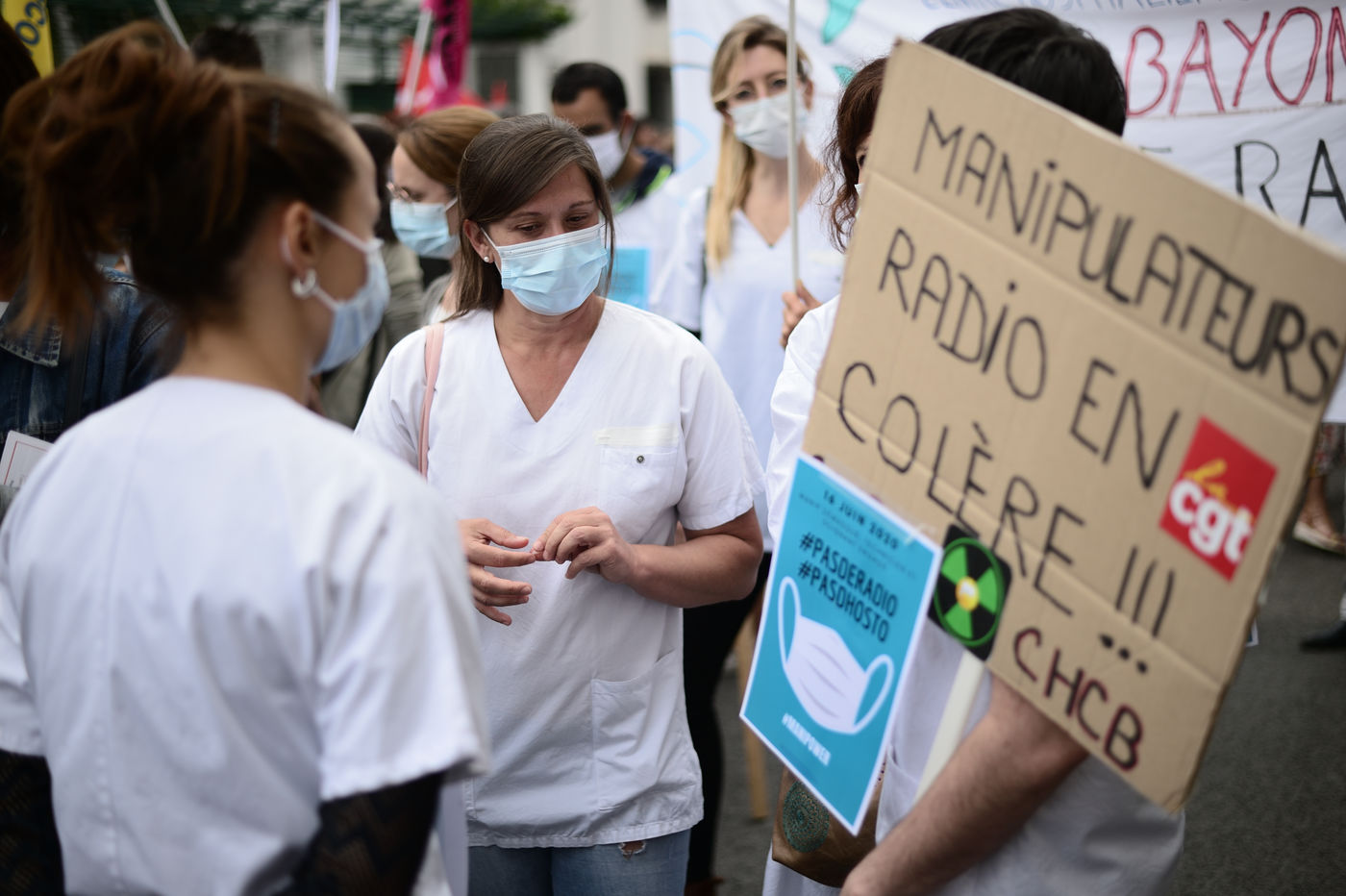 Bayonne, Tuesday June 16, 2020. Inter-union protest for health and social progress in front of the sub-prefecture of Pyrénées-Atlantiques.