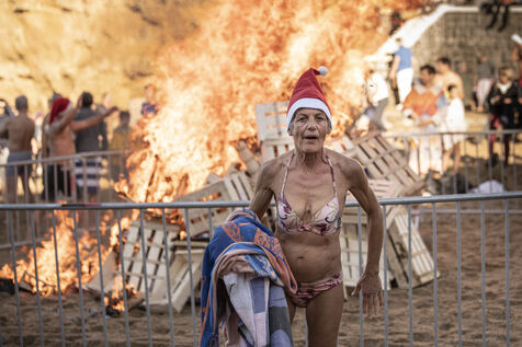 Christmas 2022 in Biarritz. The traditional Christmas bath of the White Bear Club on the beach of Port Vieux.