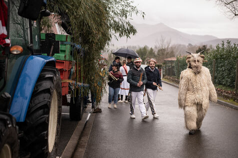 Le cortège est mené par l'ours qui sort de son hibernation, suivi des kaskarots, zirtzils, ponpierra, kotilun gorri et musiciens.