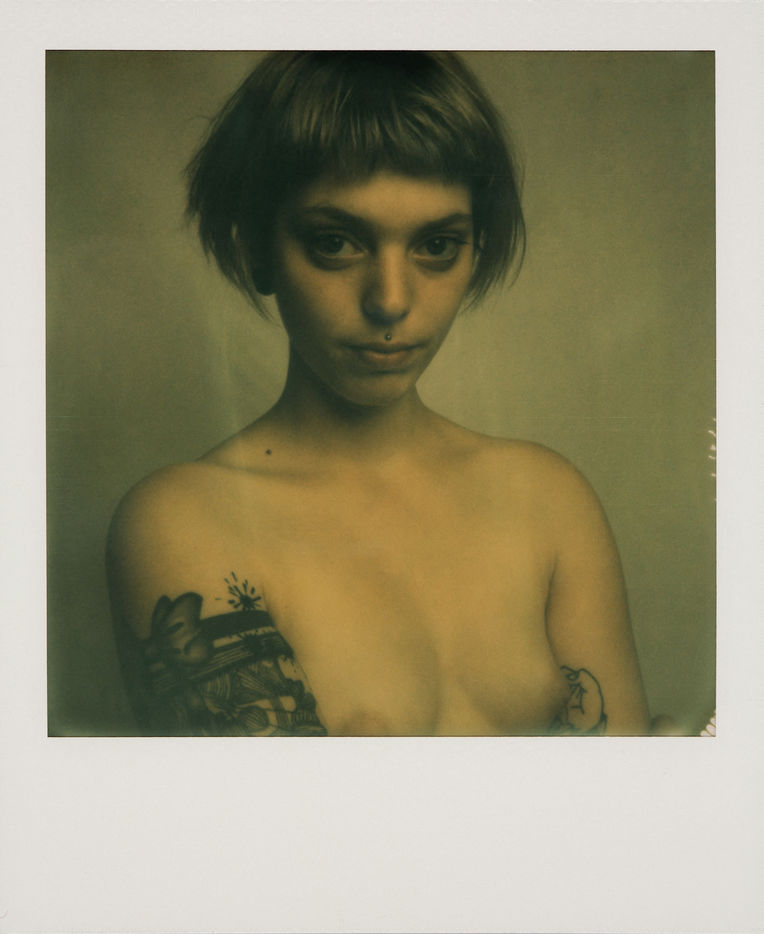 Si l'on se plonge dans l'incroyable quantité de films Polaroid disparus, on trouve le Fade To Black, conçu pour que l'image disparaisse dans les 24 heures. La photo se développait comme un pola noir & blanc avec une teinte verdâtre, parfois jaunâtre, puis poursuivait son développement, devenant de plus en plus sombre, jusqu'au noir complet. Le Fade to Black a été conçu à l'origine pour un usage industriel, pour que les images ou les documents puisse être partagés, puis jetés sans se soucier d'éventuelles fuites. Le film a néanmoins trouvé un usage artistique, intégrant la célèbre ligne Artistic TZ pour les appareils de type SX-70. Si l'on ouvre la photographie en deux, on peut stopper le processus chimique et conserver l'image, souvent rayée, endommagée ou tachée. C'est précisément le but de cette série de portraits. Le film Fade to Black est aujourd'hui presque impossible à trouver.