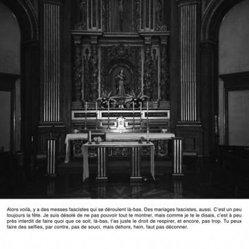 Comment photographier l'invisible ? Francisco Franco est enterré à quelques kilomètres de Madrid, dans un mausolée mégalomane. Il est interdit de photographier l'intérieur de la chapelle funéraire. Comment faire un sujet photographique sur un lieu impossible à photographier ? Comment révéler le tabou espagnol du franquisme et son héritage dans la démocratie parlementaire du pays ? Comment parler de la guerre civile ?