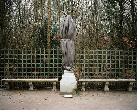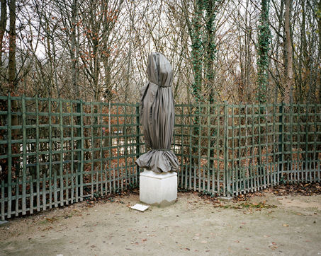 During winter, the statues in Versailles Castle's park are wrapped with canva to protect them from the cold.