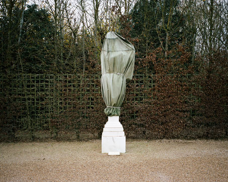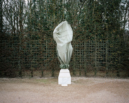 En hiver, les statues du parc du château de Versailles sont emballées dans de la toile pour les protéger du froid et des élements.