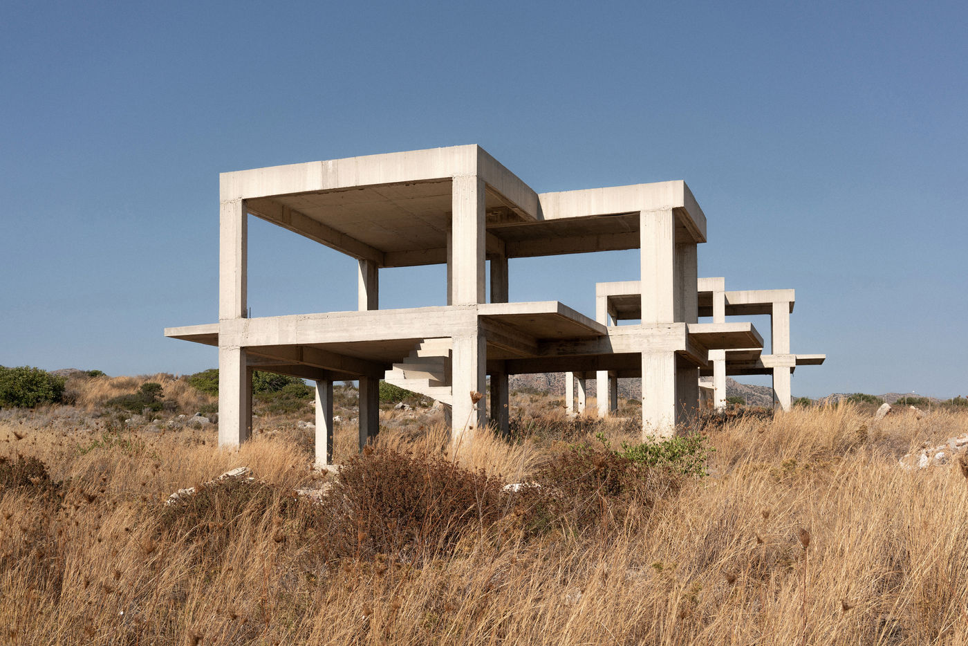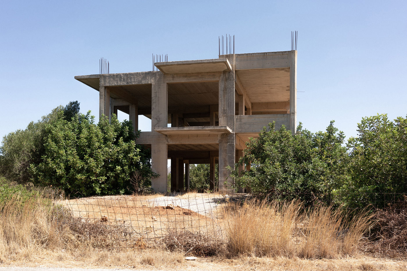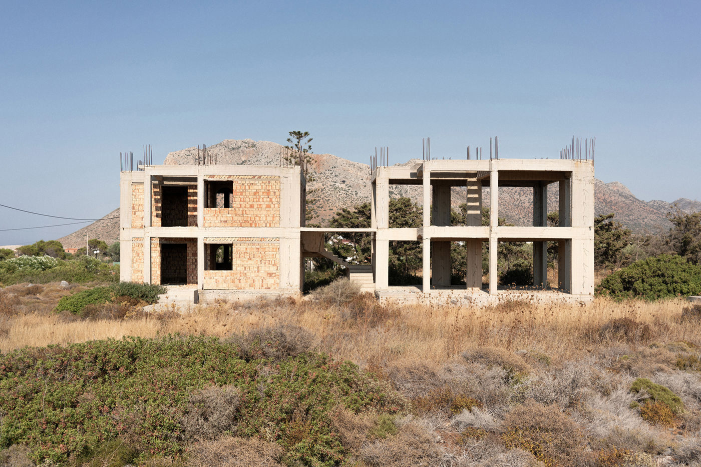 Crete, an island in the south of Greece, presents everywhere these concrete structures left in decay due to the economic crisis that is taking hold in this region of the world. These images were taken in the autumn of 2020.