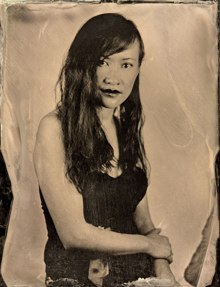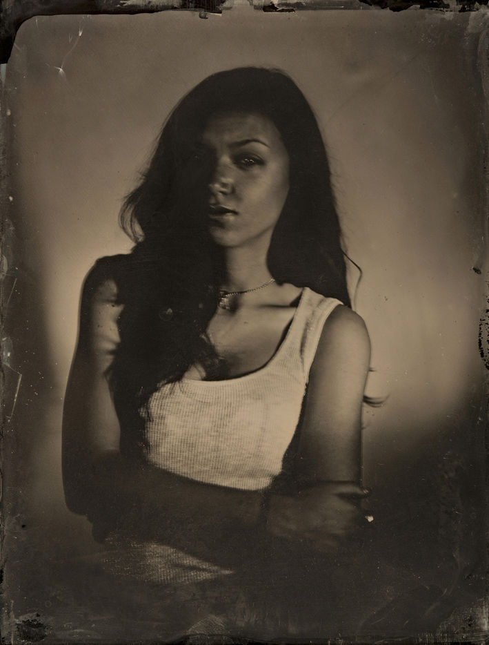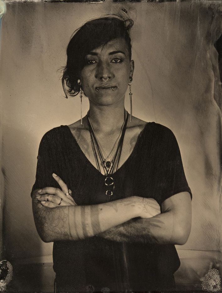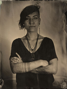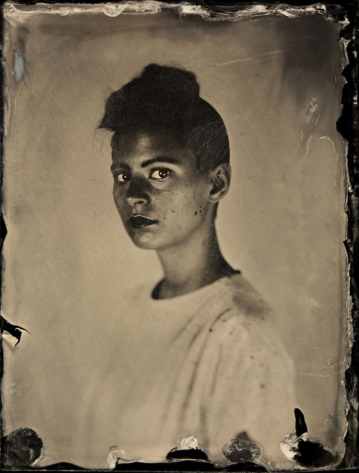 collodion humide est un procédé ancien qui permet d'obtenir un négatif sur plaque de verre ou un positif direct sur plaque métallique. Il se distingue des procédés secs par la nécessité d'exposer et de développer la plaque immédiatement après l'application de l'émulsion. Ces portraits sont des collodions sur plaque de verre, au format 4x5, réalisés à la chambre Horseman.