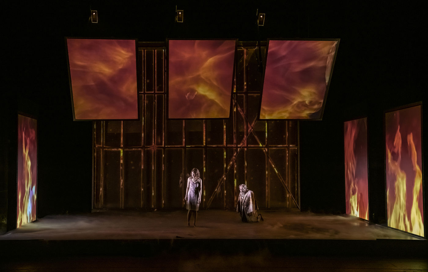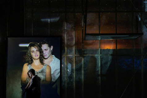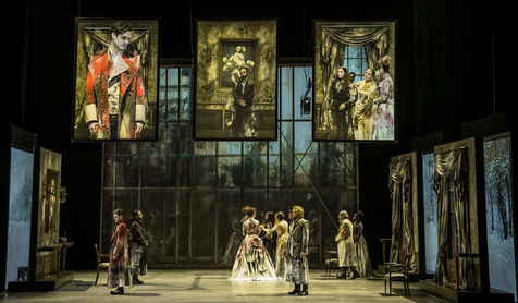 LES DEMONS according to Fiodor Dostoievski, directed by Guy Cassiers with Alexandre Pavloff (Chigaliov) Christian Gonon (Serguei Vassilitch Lipoutine) Julie Sicard (Arina Prokhorovna Virguinskaia) Serge Bagdassarian (Tolkatchenko) Herve Pierre (Stepane Trofimovitch Verkhovensky) Stephane Varupenne (Ivan Pavlovitch Khatov) Suliane Brahim. (Maria Timofeievna Lebiadkina) Jeremy Lopez (Piotr Stepanovitch Verkhovenski) Christophe Montenez (Nikolai Vsevolodovitch Stavroguine) Dominique Blanc (Varvara Petrovna Stavroguina) Jennifer Decker (Liza) Clement Bresson (Virguinski) Claina Clavaron (Dacha) and the actors from the academy Vianney Arcel, Robin Azema, Jeremy Berthoud, Heloise Cholley, Fanny Jouffroy, Emma Laristan at the Comedie Francaise hall Richelieu. Photography by Pascal Gely / Hans Lucas