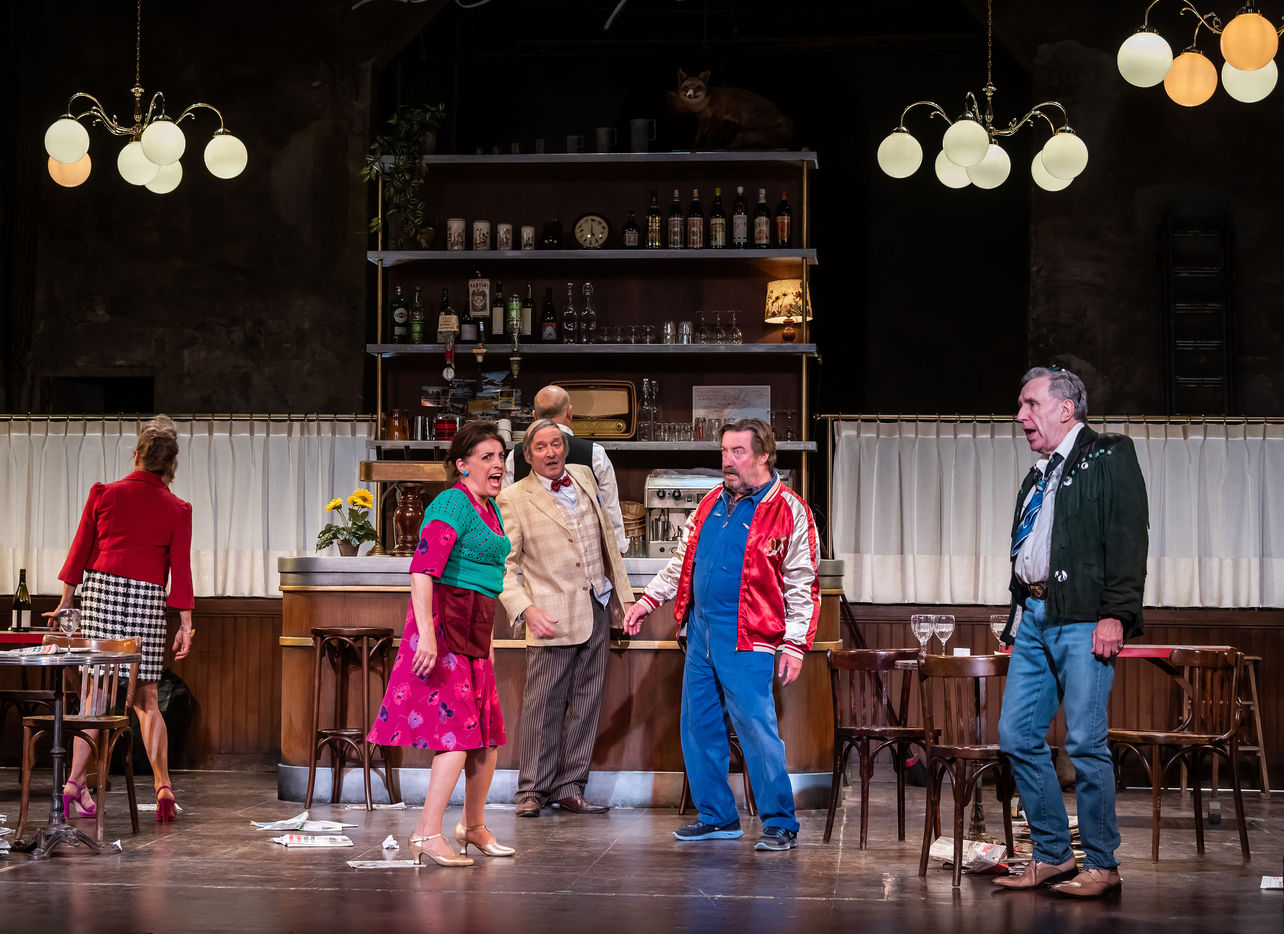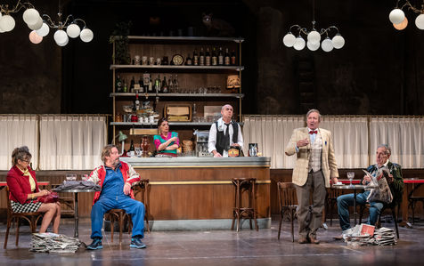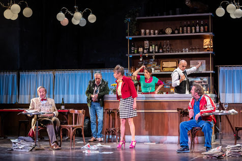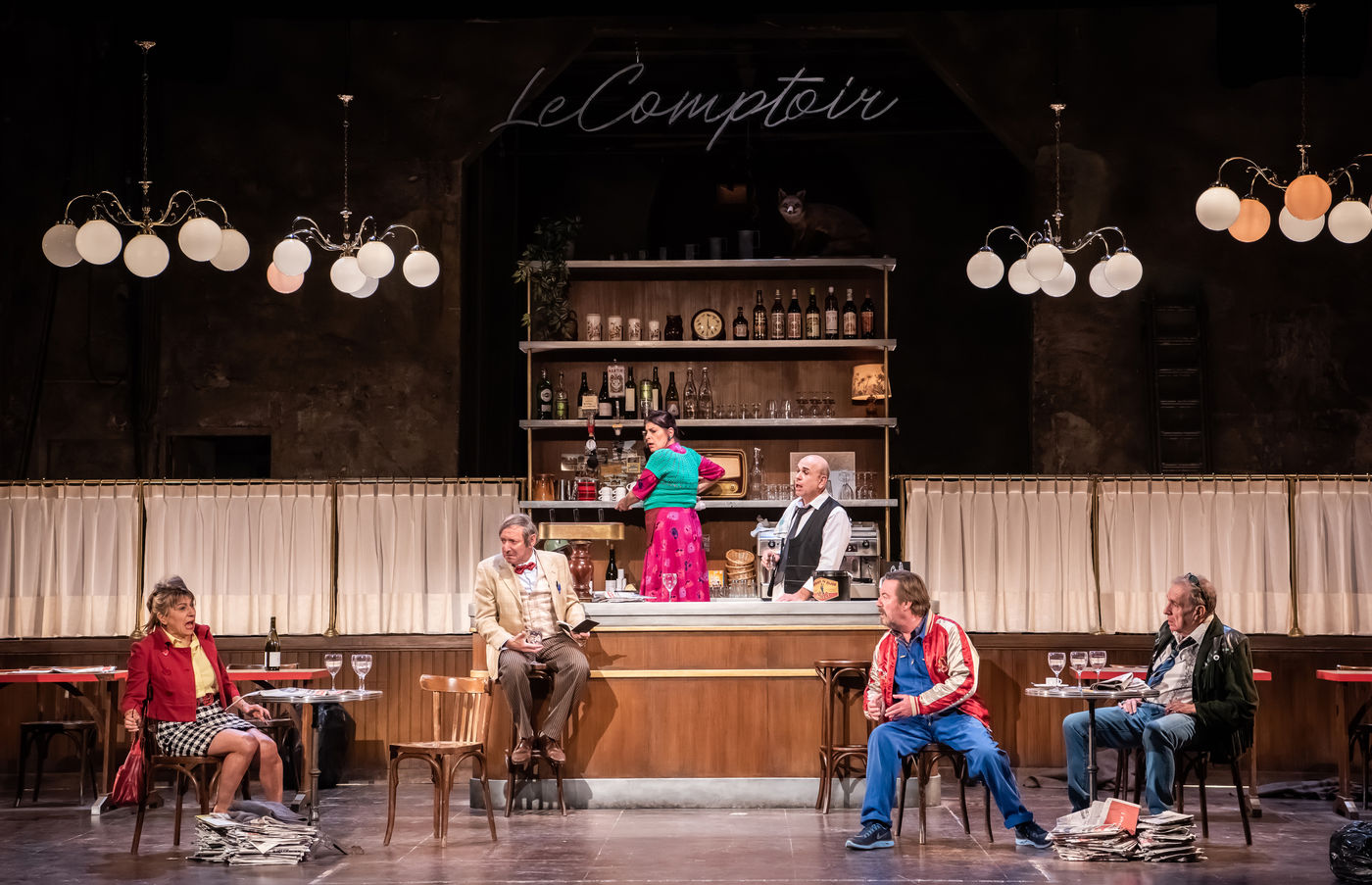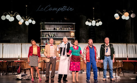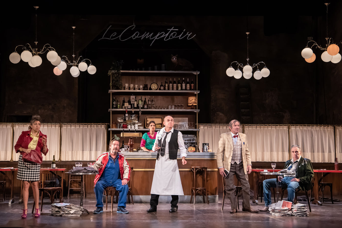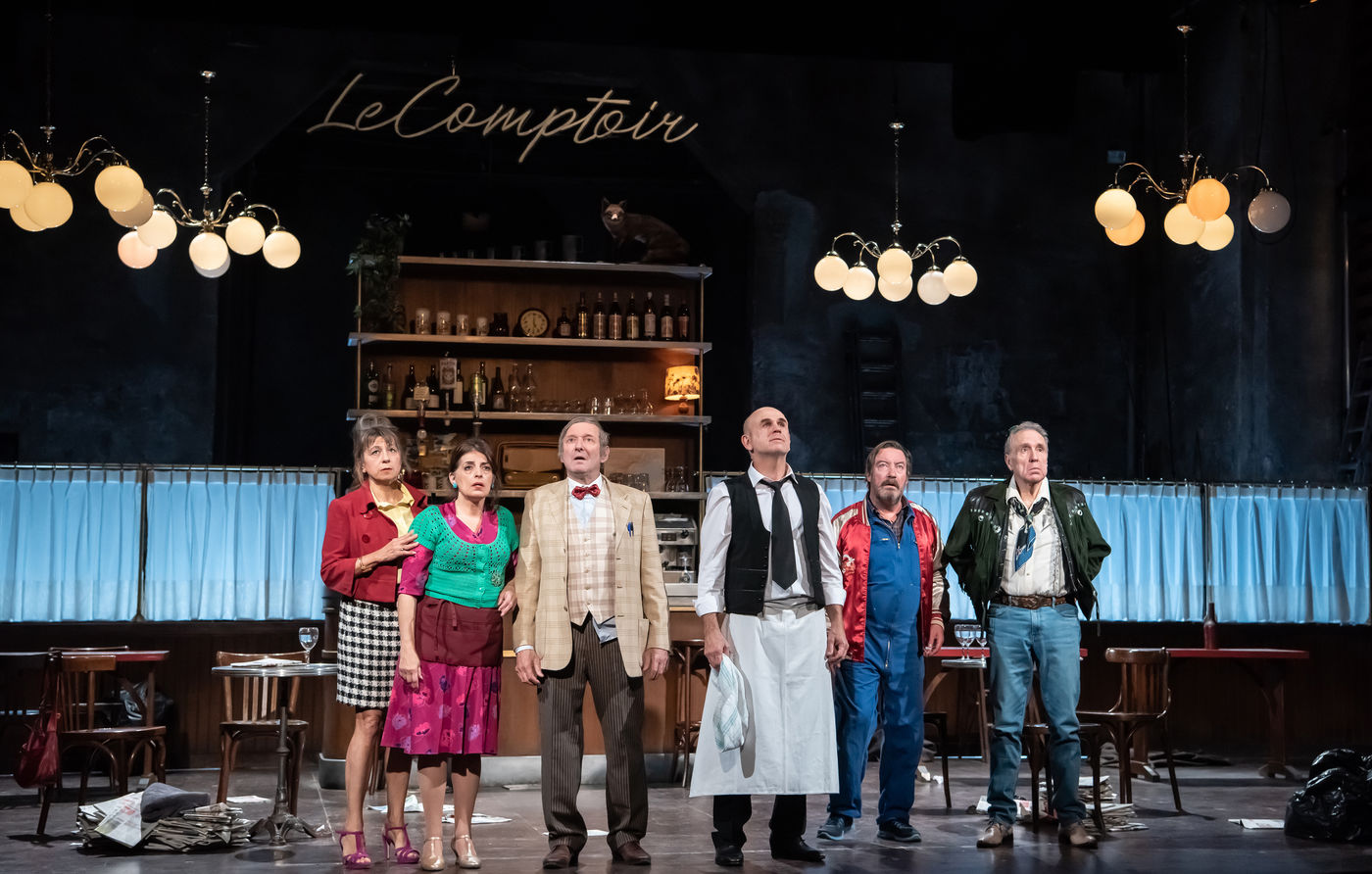 BREVES DE COMPTOIR TOURNEE GENERALE texte de Jean-Marie Gourio mise en scene de Jean-Michel Ribes avec Philippe Duquesne, Nanou Garcia, Gilles Gaston-Dreyfus, Philippe Magnan, Marie-Christine Orry et Philippe Vieux au Theatre de l Atelier. Photographie de Pascal Gely / Hans Lucas