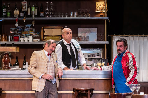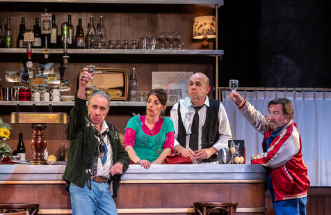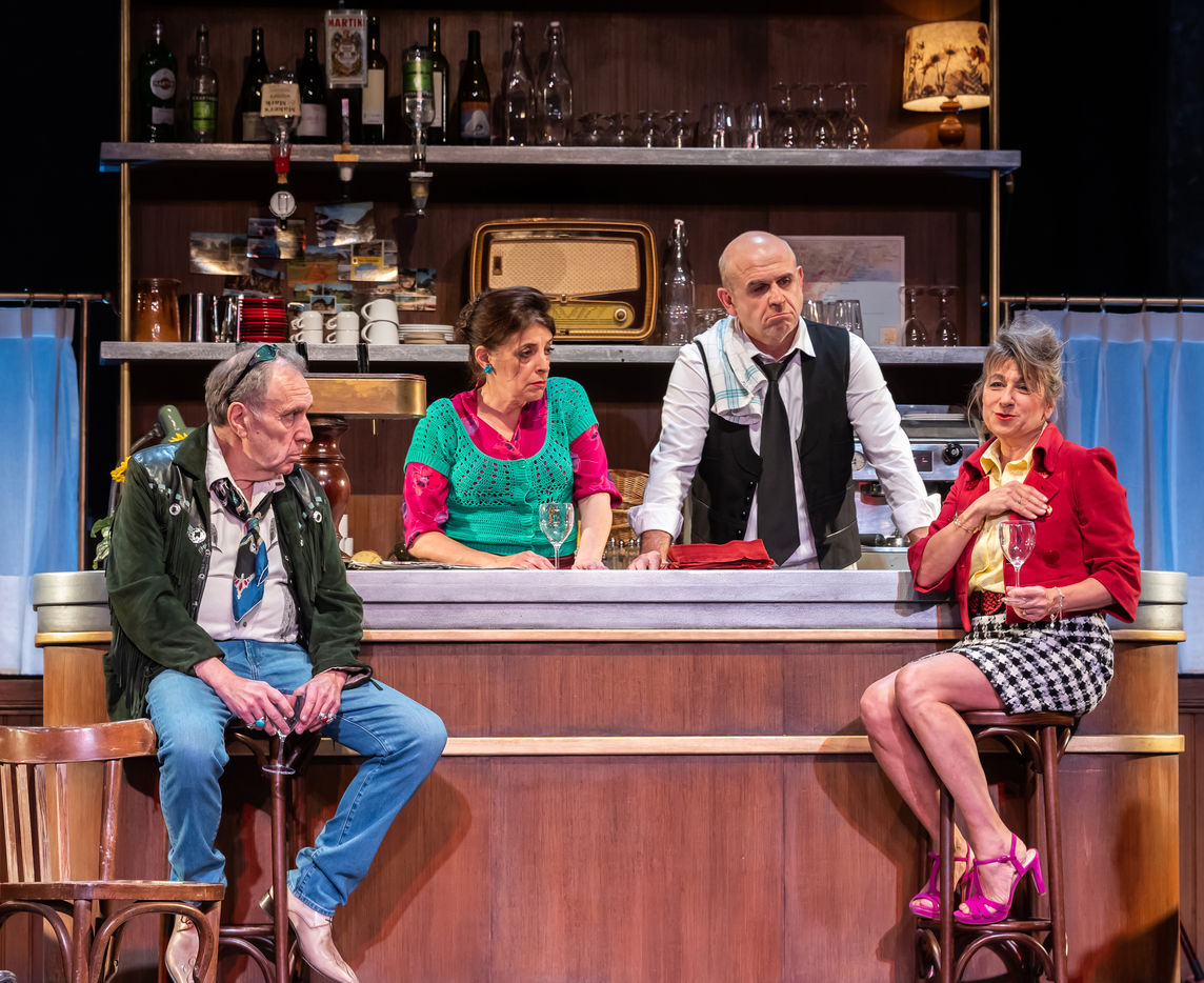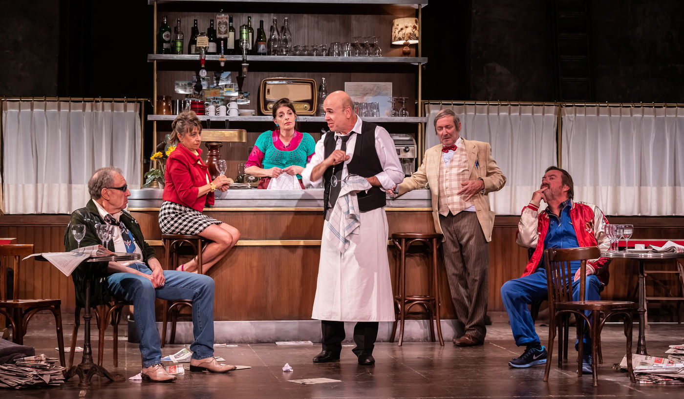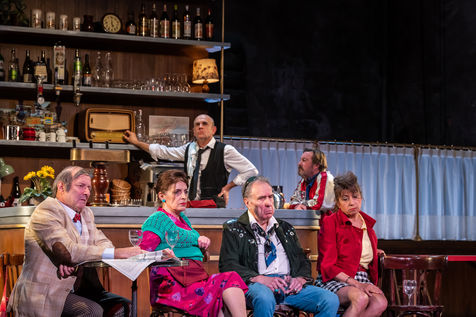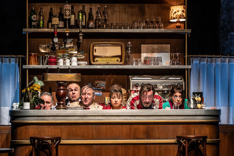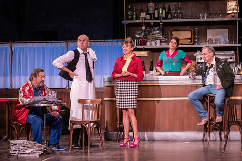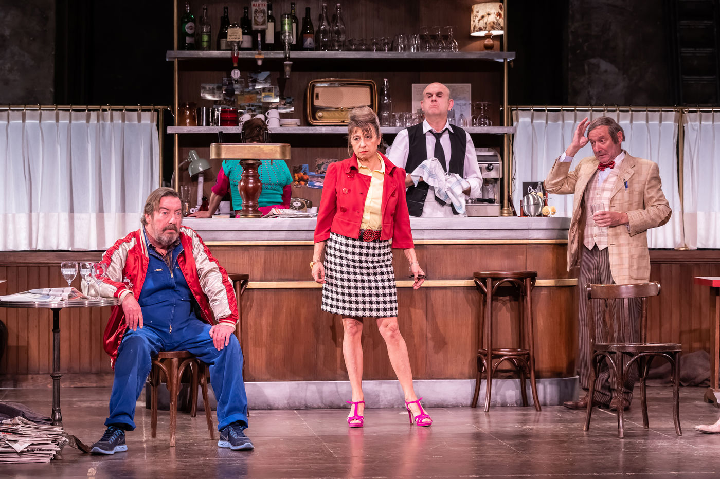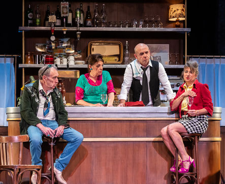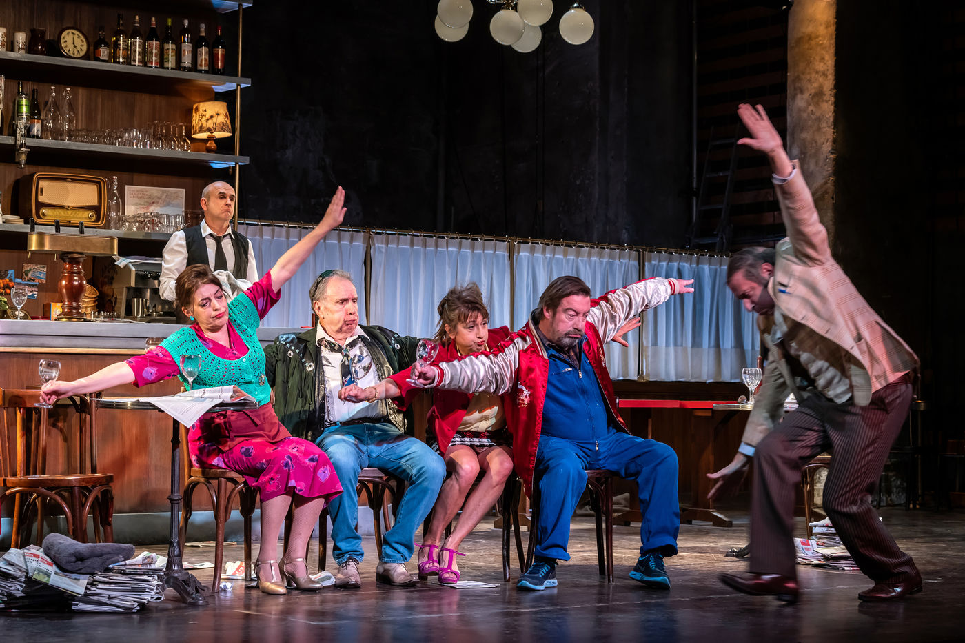 BREVES DE COMPTOIR TOURNEE GENERALE texte de Jean-Marie Gourio mise en scene de Jean-Michel Ribes avec Philippe Duquesne, Nanou Garcia, Gilles Gaston-Dreyfus, Philippe Magnan, Marie-Christine Orry et Philippe Vieux au Theatre de l Atelier. Photographie de Pascal Gely / Hans Lucas