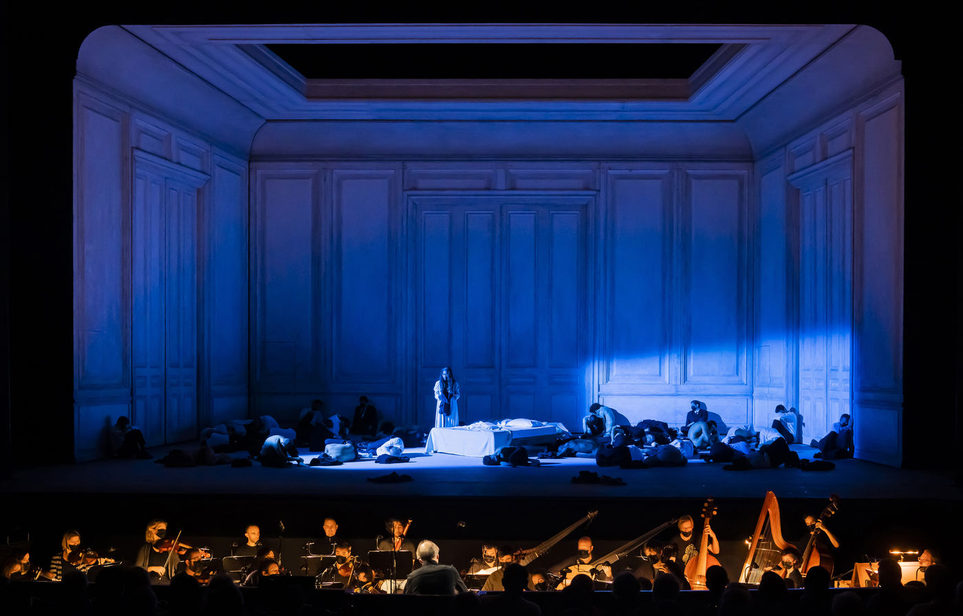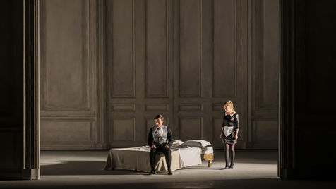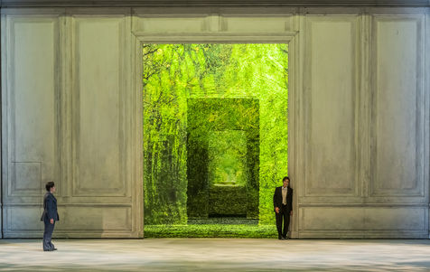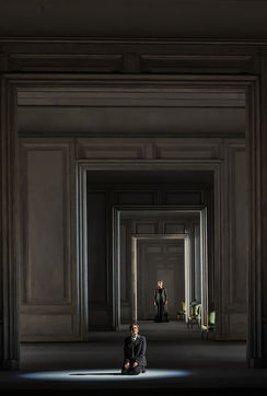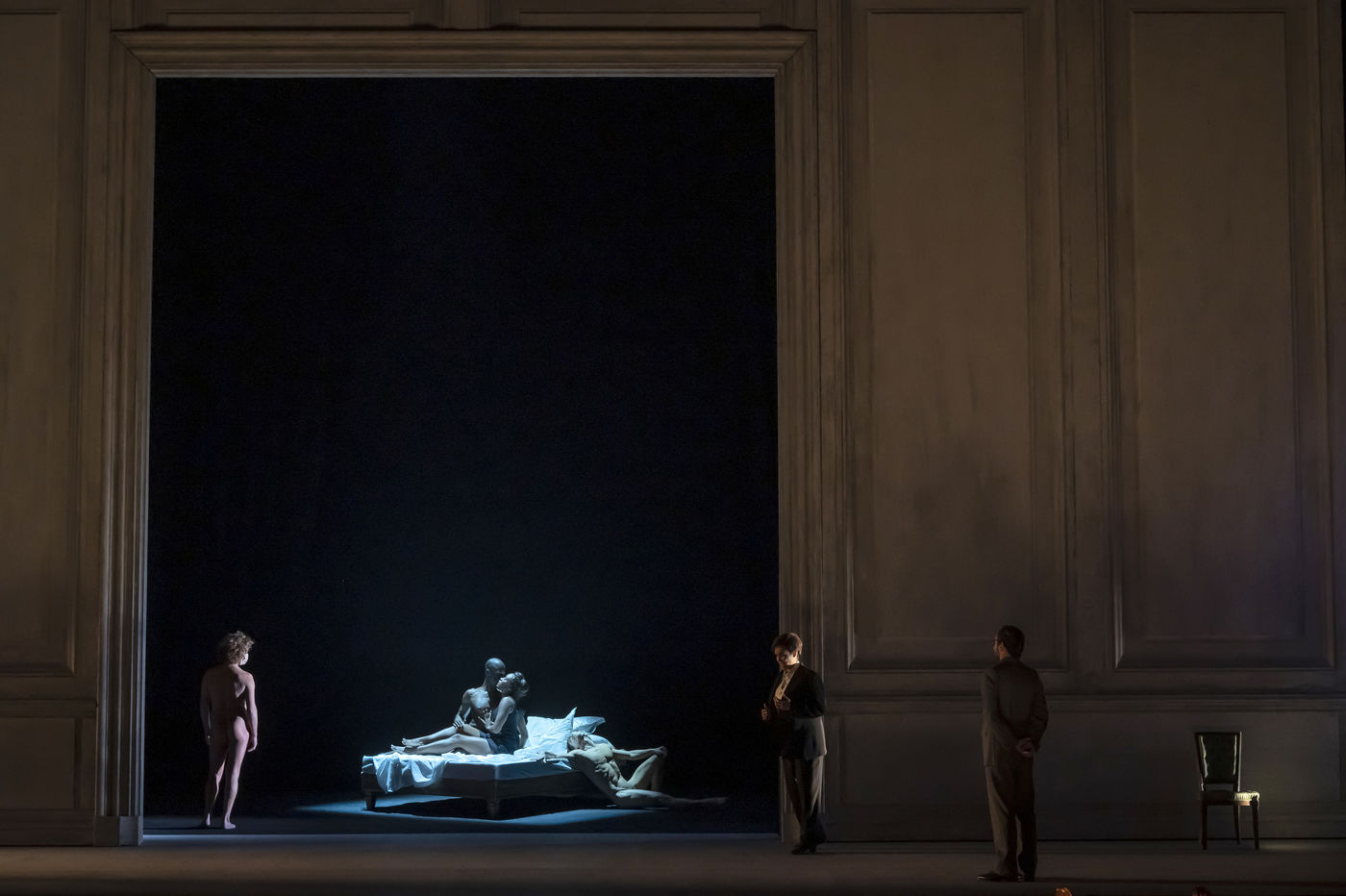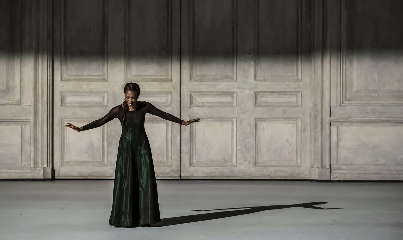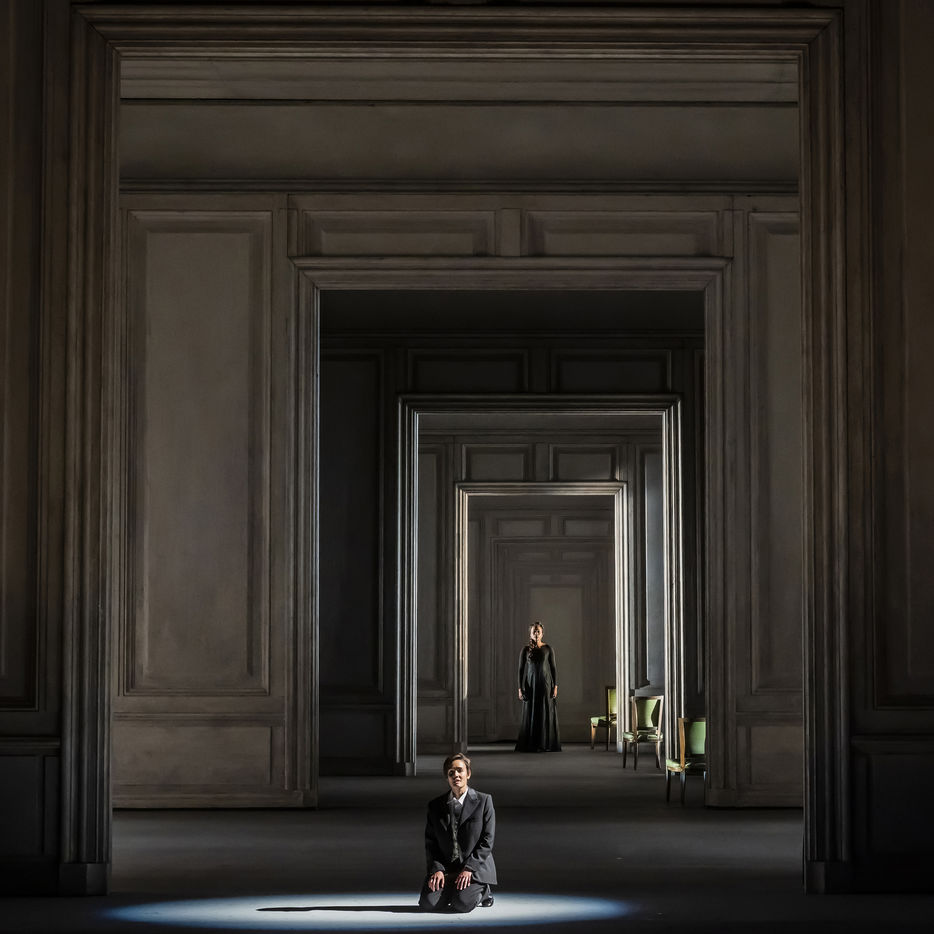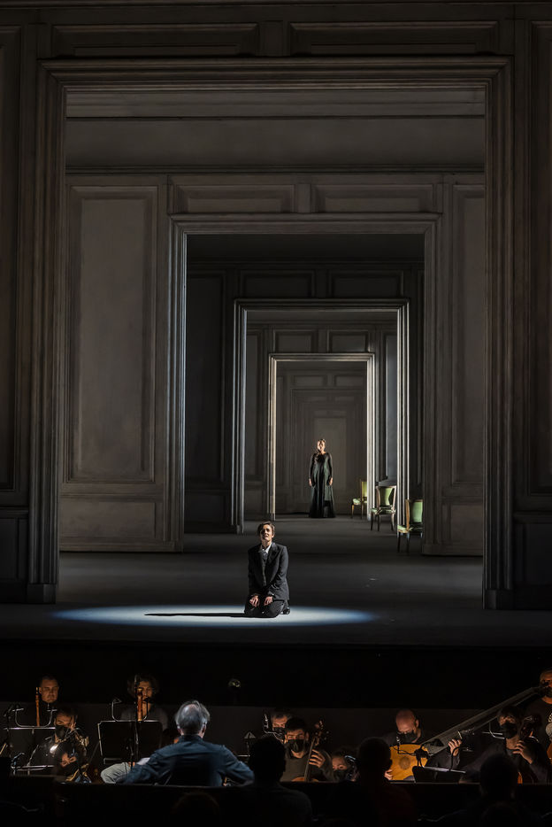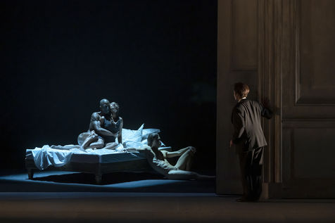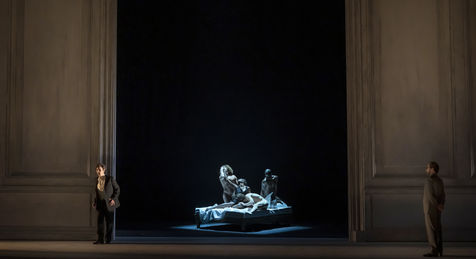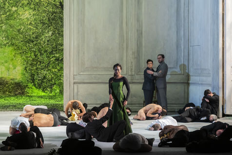 ALCINA musique Georg Freidrich Haendel direction musicale Thomas Hengelbrock mise en scene Robert Carsen avec Jeanine De Bique : Alcina, Gaelle Arquez : Ruggiero, Sabine Devieilhe : Morgana, Roxana Constantinescu : Bradamante, Rupert Charlesworth : Oronte et Nicolas Courjal : Melisso : Melisso a l Opera National de Paris Palais Garnier. Photographie de Pascal Gely / Hans Lucas