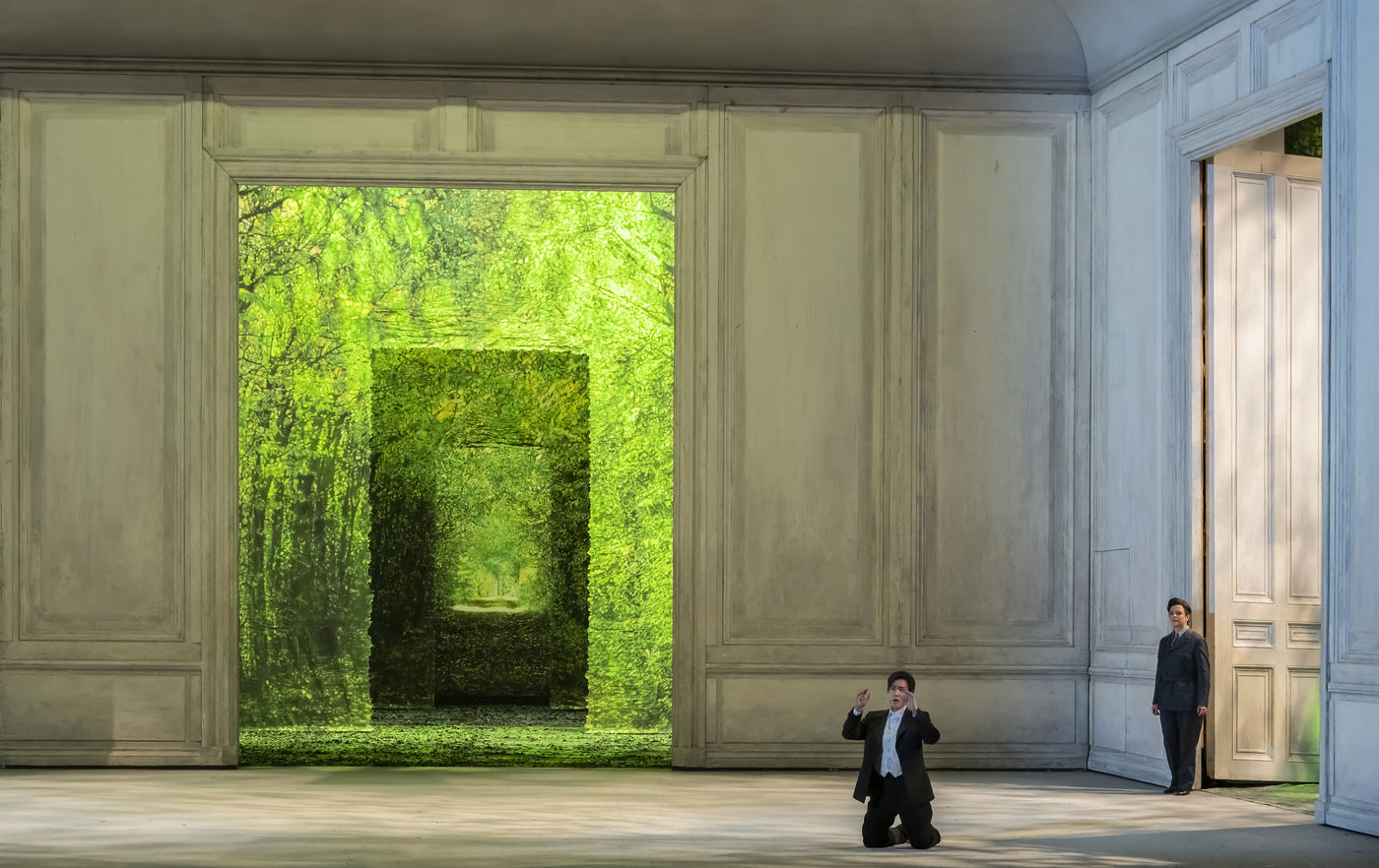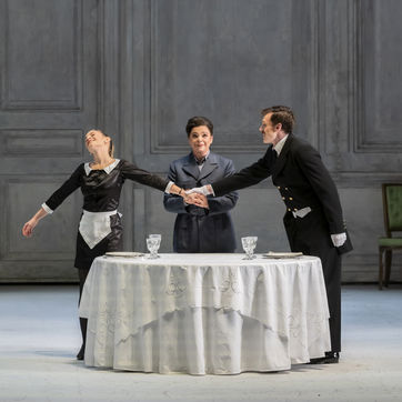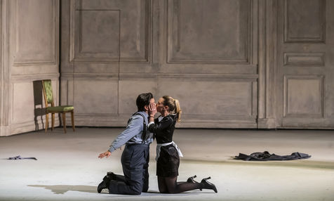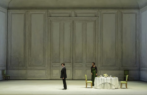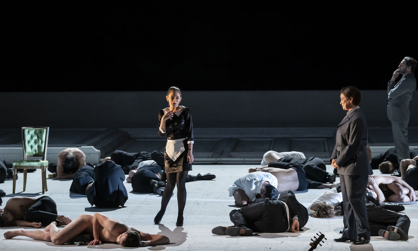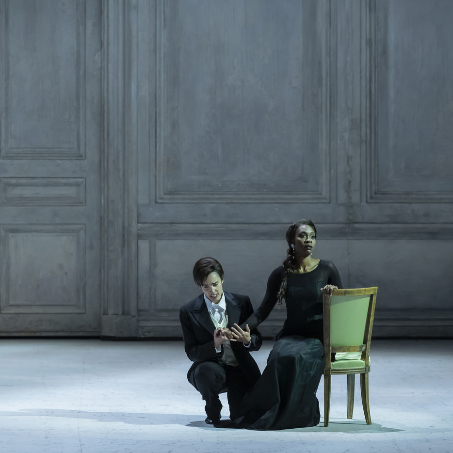 ALCINA music by Georg Freidrich Haendel music direction by Thomas Hengelbrock stage direction by Robert Carsen with Jeanine De Bique : Alcina, Gaelle Arquez : Ruggiero, Sabine Devieilhe : Morgana, Roxana Constantinescu : Bradamante, Rupert Charlesworth : Oronte and Nicolas Courjal : Melisso : Melisso at the Opera National de Paris Palais Garnier. Photograph by Pascal Gely / Hans Lucas