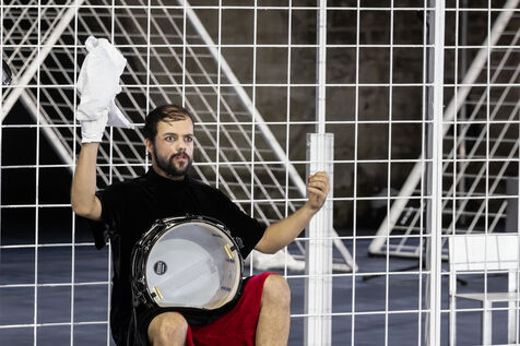 NOT Choregraphie de Marlene Monteiro Freitas avec Marie Albert, Joaozinho da Costa, Miguel Filipe, Ben Green, Henri « Cookie » Lesguillier, Tomas Boital, Rui Paixao et Marian Freitas a la Cour d Honneur du Palais des Papes Avignon. Photographie de Pascal Gely / Hans Lucas