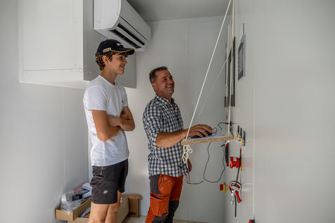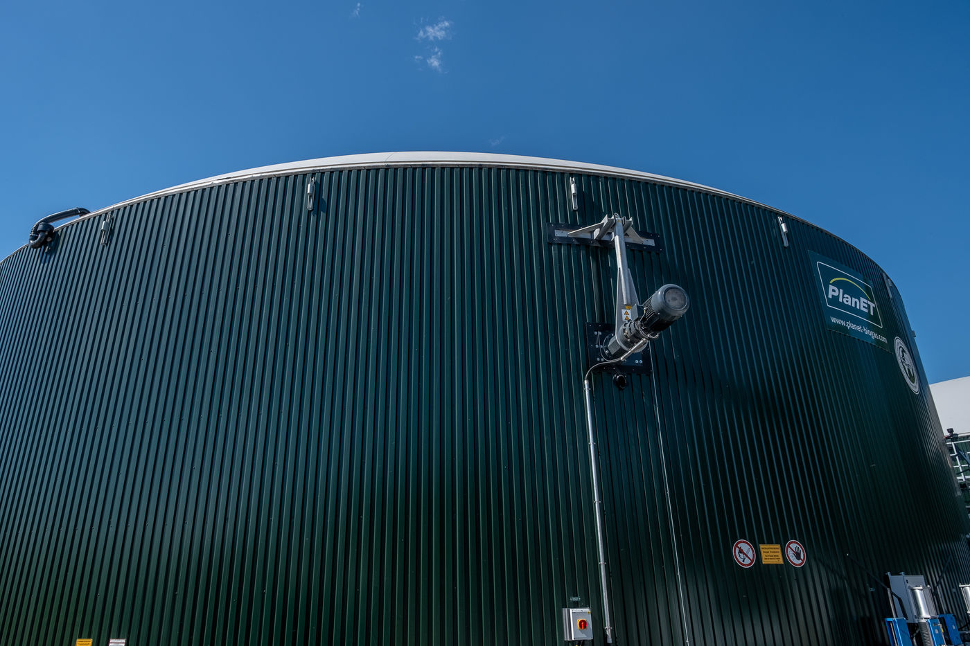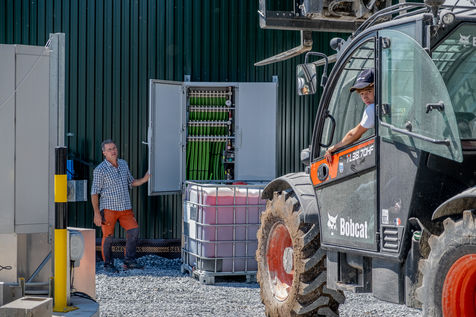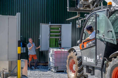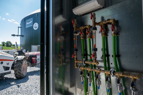 The unit is run by the association of 11 farmers wanting to find a common solution for the disposal of their farms' organic waste and eager to take part in a more circular economy. They now take turns to make sure the two digesters, where the organic wastes ferment, are running smoothly. Romain, a young intern from Pau-Montardon agricultural college is feeding the tanks with a simple mix of manure, corn silage and other intermediate energy crops from neighboring farms. Each year, by the action of heat, 30 000 tons of organic waste are transformed into biogas and digestate. An equal amount (30 000 tons) of digestate can then be used as a fertilizer, through soil nourrishment and humification, contributing to the recycling of the organic waste promoted by circular economy. The biogas, composed of methane (CH4) and carbon dioxyde (C02) can either be used as direct fuel, fuel for electricity production or, as it is the case in