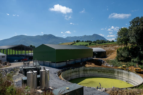 Discrètement logée dans une cuvette entre deux collines, au centre d'une vingtaine d'exploitations agricoles partenaires qui participeront de son succès, l'unité de méthanisation Asson Bioénergie s'inscrit, sinon idéalement, au moins de façon capable dans le paysage rurale et la zone de montagne où elle démarre sa production de biométhane.
