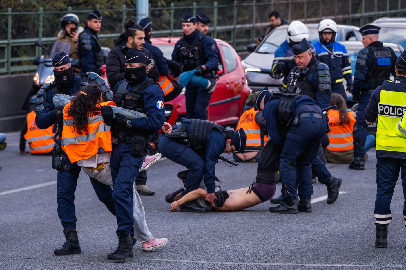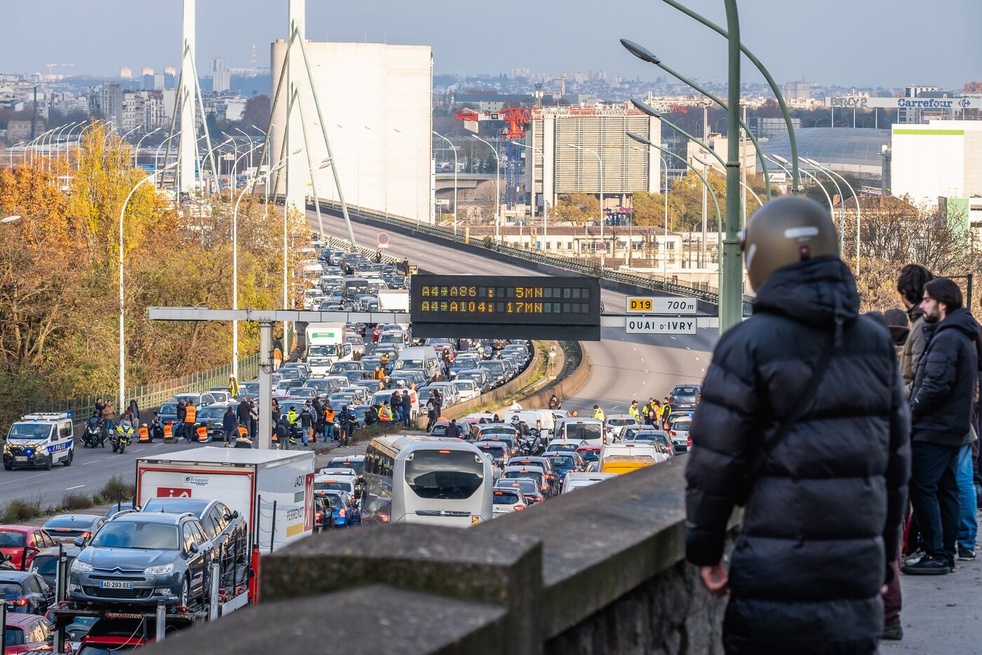 Pour la derniere action de cette vague, les activistes de Derniere Renovation bloquent le peripherique parisien.