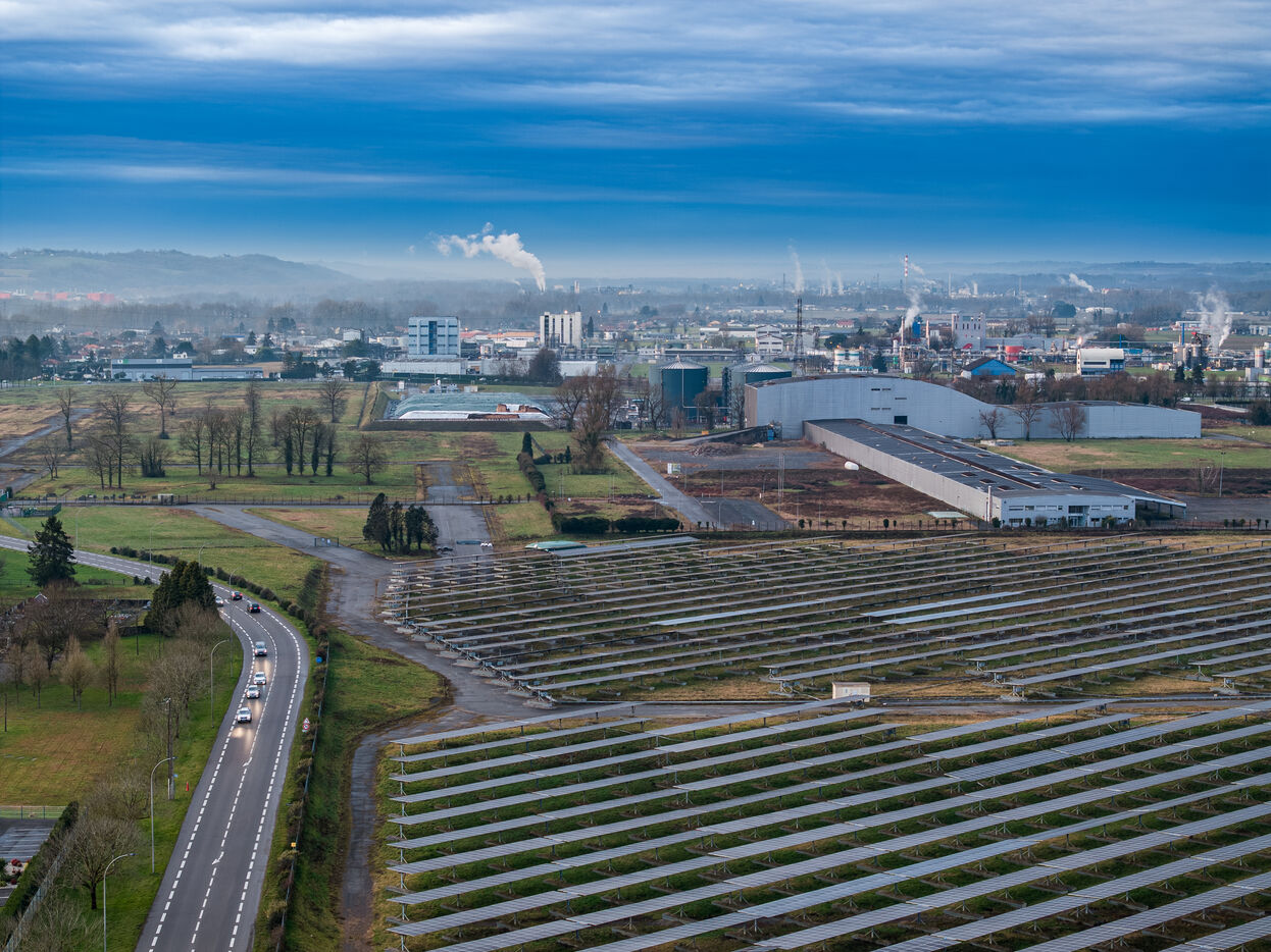 Dans le bassin industriel de Lacq, a l'origine un site d'extraction de gaz naturel, des projets tels que E-CHO d Elyse Energy, avec une unite de production de biokerosene (BioTJet) et une usine de production de e-methanol (eM-Lacq) promettent une economie decarbonee, notamment a travers la production de "bio" carburant et de kerosone "vert" en utilisant des ressources naturelles, comme les forets alentours et l'eau du gave de Pau.