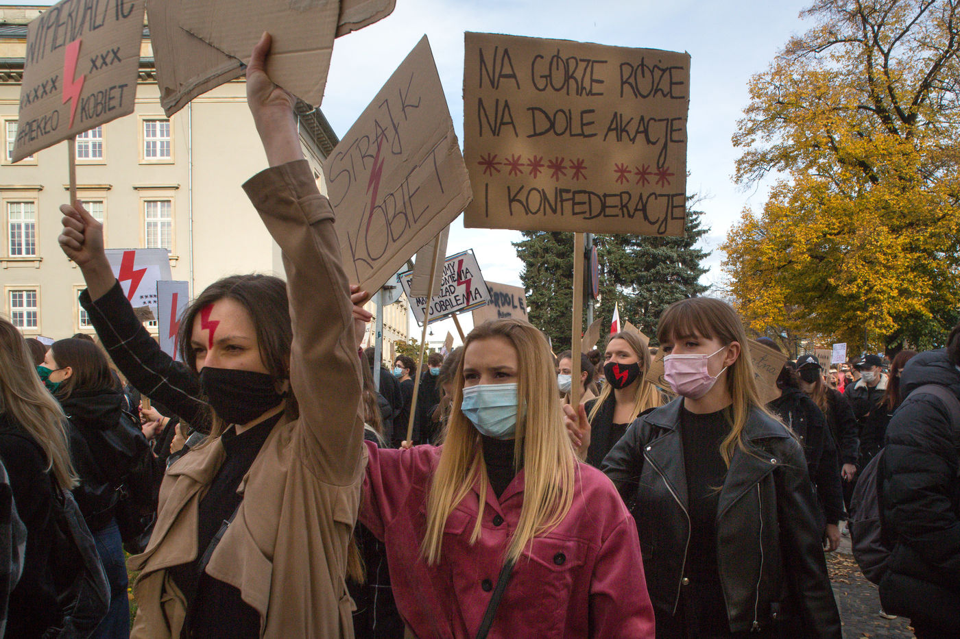A majority of women demonstrated to demand respect for their human rights. Several incidents involving hooded individuals armed with sticks, knives and pepper spray attacking protesters were reported. In Wroclaw, two journalists from the newspaper Gazeta Wiborcza were molested.