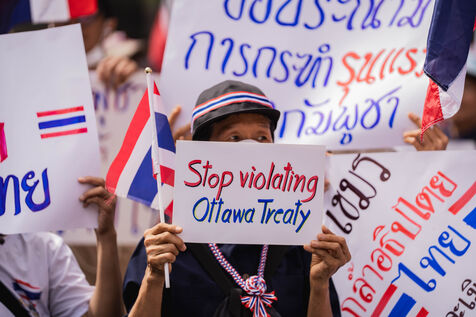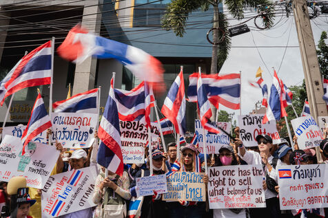 Protesters gathered outside the Royal Embassy of Cambodia in Bangkok to denounce the alleged use of newly planted landmines by Cambodian forces along the Thai-Cambodian border, particularly in the Chong Bok area of Ubon Ratchathani Province. The demonstration was sparked by a July 16 incident in which Thai soldiers were injured, one seriously, after stepping on landmines during a routine patrol.
