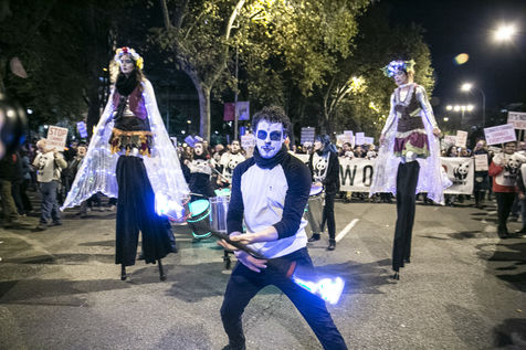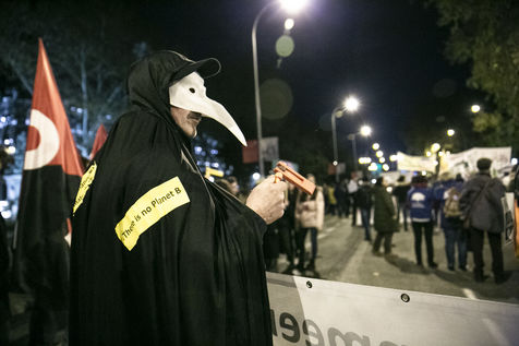 Une grande manifestation non violente pour protester contre le changement clmatique a eu lieu entre la Gare d'Atocha et le quartier de Nuevos Ministerios, a Madrid, pendant la COP25. Plusieurs collectifs etaient presentes, entre eux des activistes pour les droits de l'homme chiliens, des representants des peuples originaires de l'Amazonie et autres parts de la planete, et aussi plus d'une douzaine d'organizations politiques, ecologiques et feministes espagnoles, portugaises et allemandes entre autres.