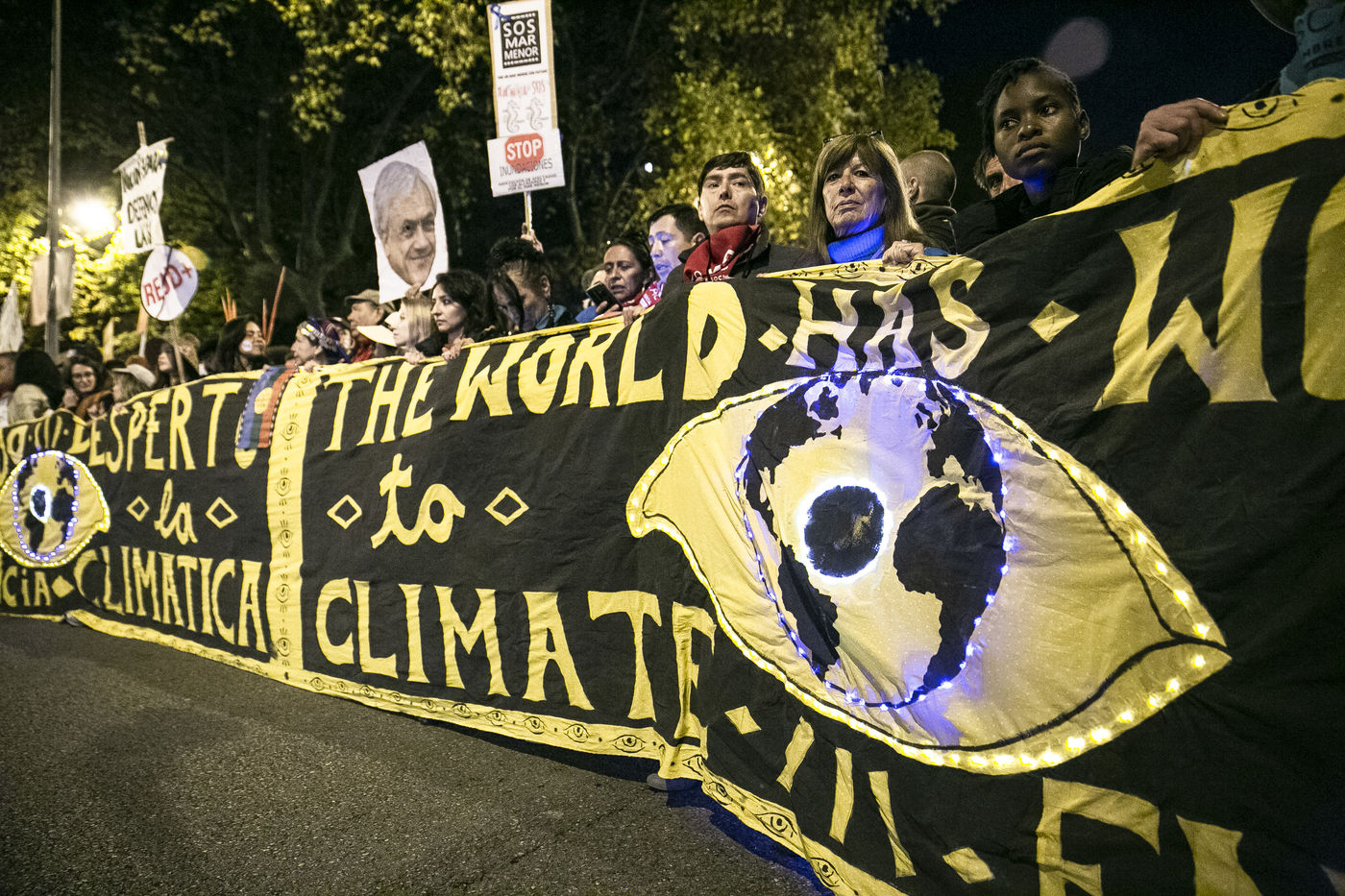 A massive and non-violent climate change protest marched from Atocha train station to Nuevos Ministerios, Madrid, during COP25. Many collectifs were present, among others chiliean activists for human rights, aboriginal people from the Amazonia and other parts of the world, and more than a dozen other political, ecological and feminist organizations from Spain, Portugal, Germany among others.
