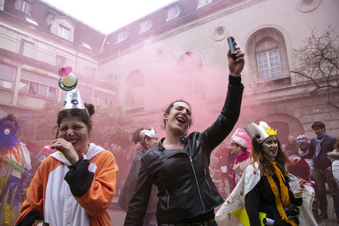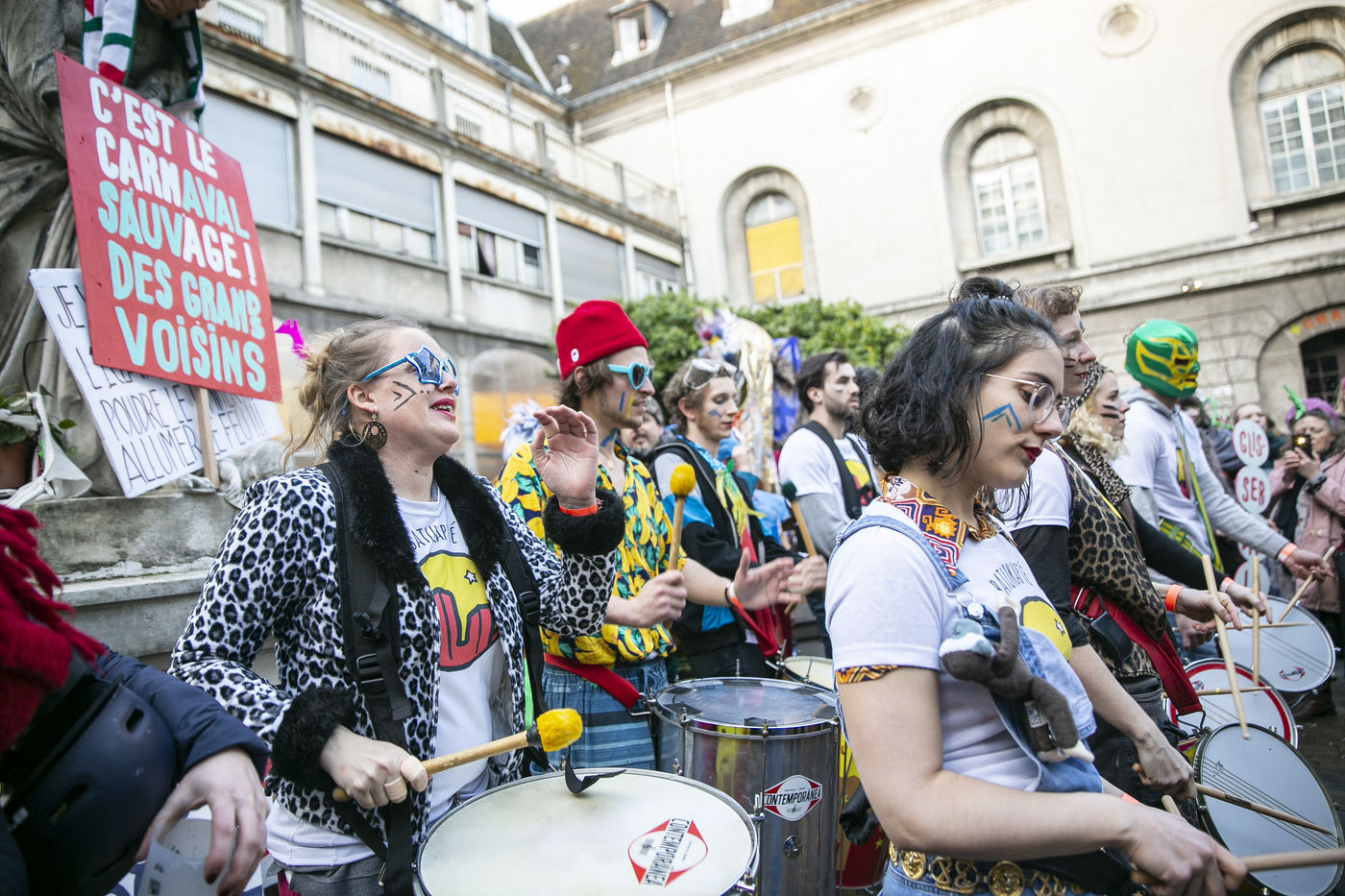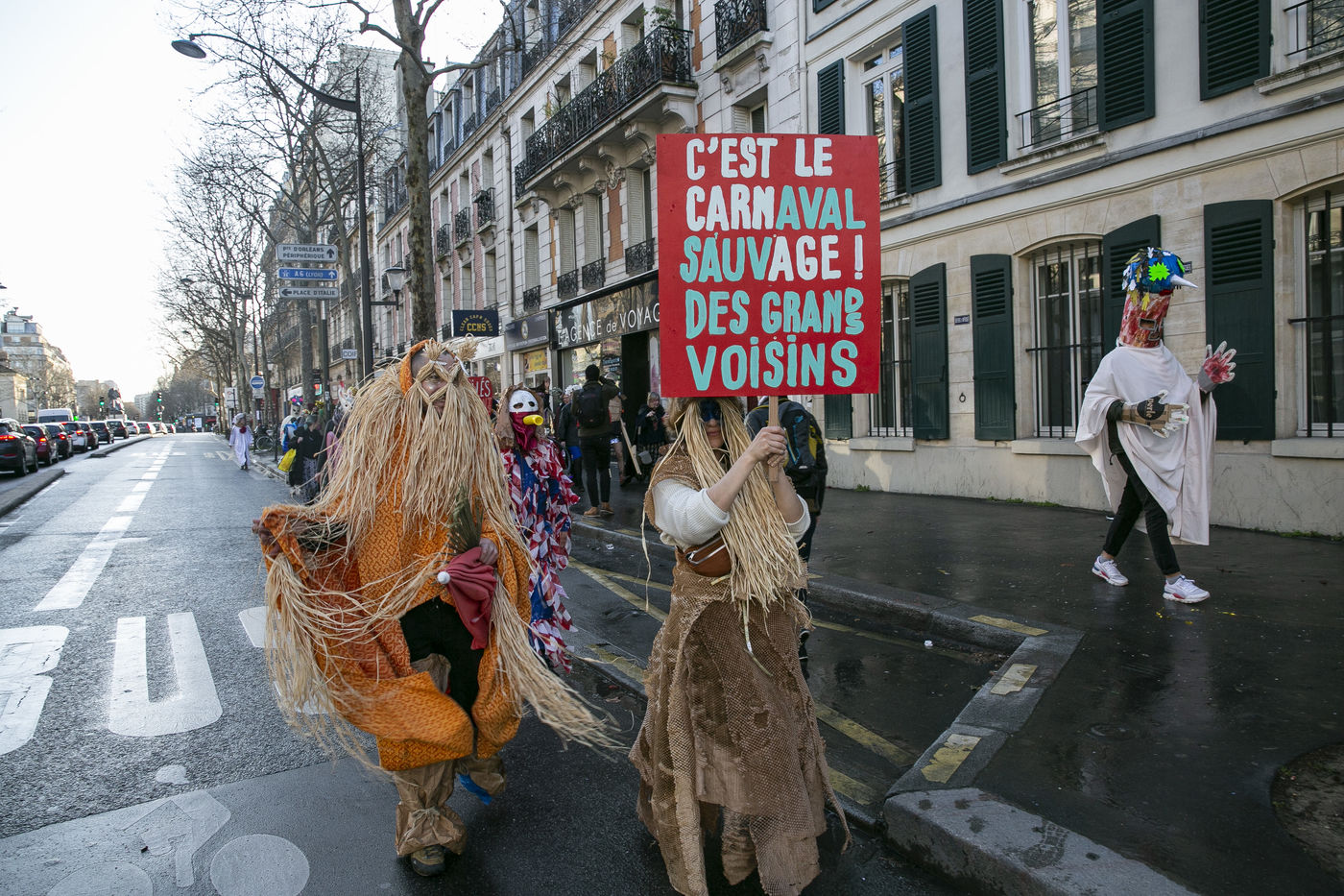 Le 29 février 2020 et avec le thème "sauvage" se celebre la fête du carnaval du centre culturel autogéré des Grands Voisins dans 14eme arrondissement de Paris. Avec une participation moins nombreuse que dans d'autres occasions a cause de la pluie et le vent, il sera la dernière fois que cette célébration aura lieu car le centre fermera au long de l'été 2020 (Paris).