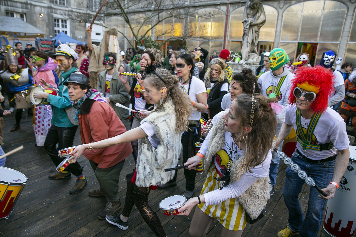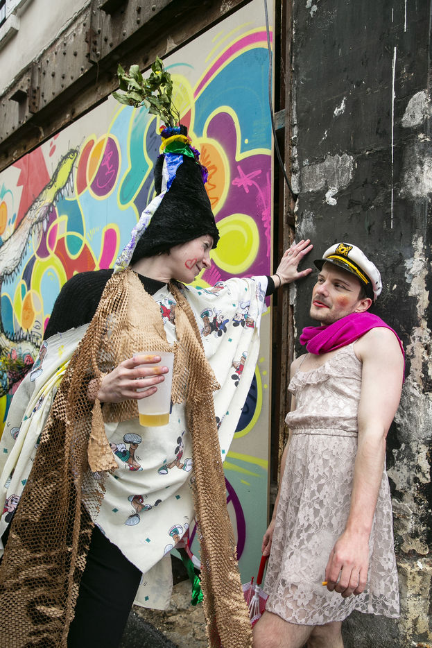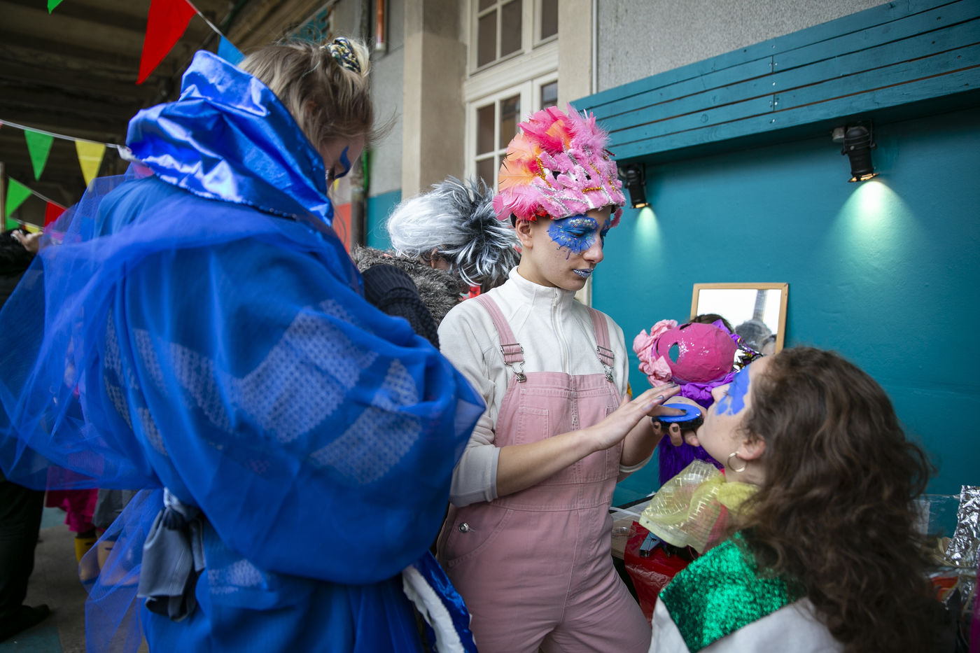 The carnival celebretion wth the theme "savage" takes place at the cultural and selforganised center of Grands Voisins in the 14th distric of Paris. With less partipants than in other occasion due to the rain and wind, this will be the last time this celebration will take place as the center will be closed during the summer of 2020 (Paris).