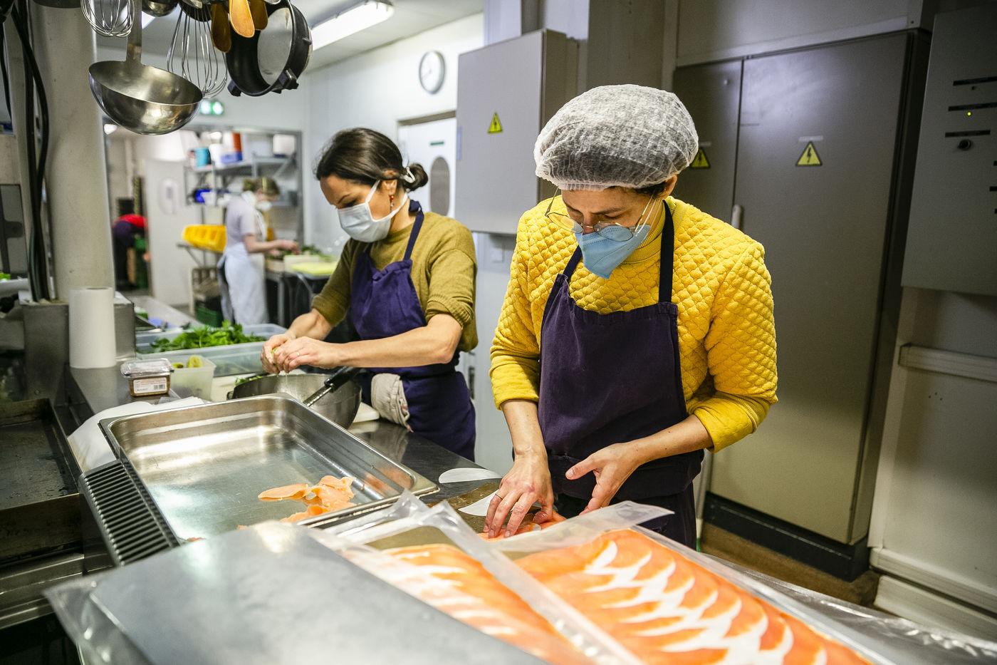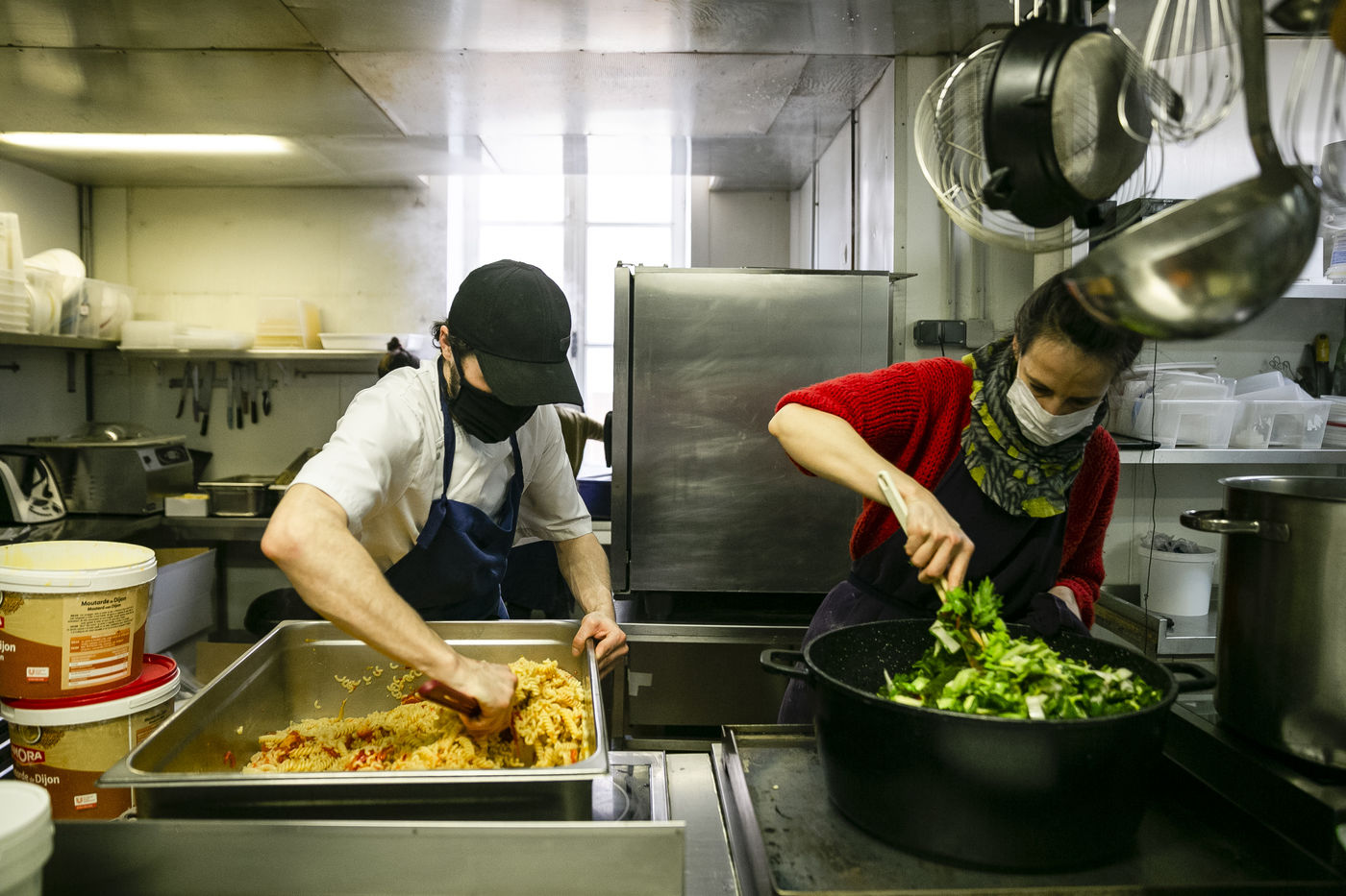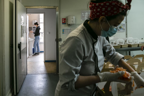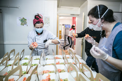L'ORATOIRE (PARIS 75014). DURING COVID-19 CONFINEMENT THE KITCHEN OF THIS RESTAURANT DISTRIBUTES MEAL TRAYS FOR THE MOST DEPRIVED (PARIS).