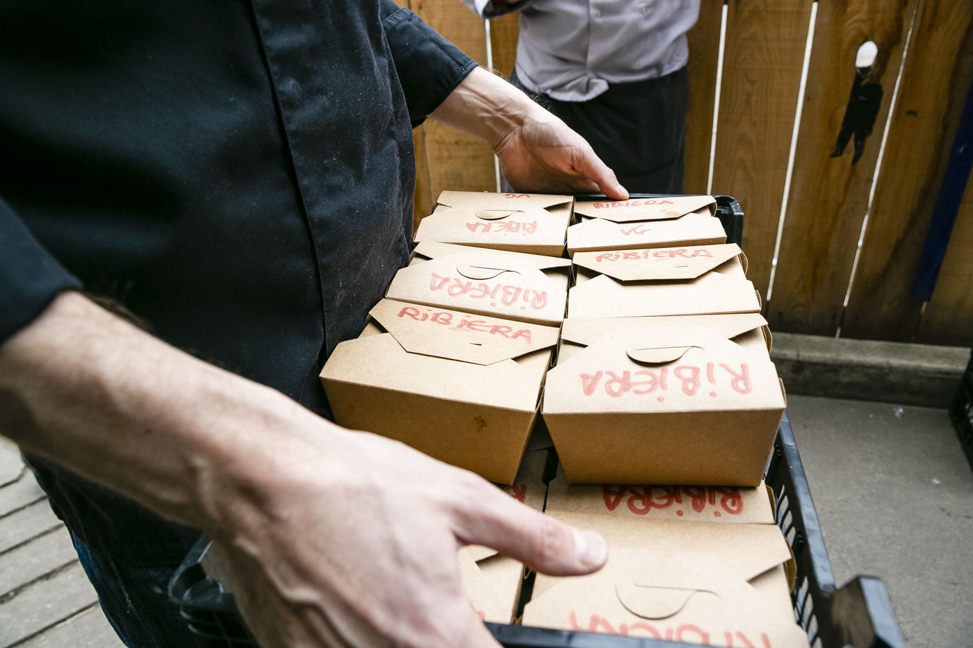 L'ORATOIRE (PARIS 75014). PENDANT LE CONFINEMENT DU COVID-19, LA CUISINE DE CE RESTAURANT DISTRIBUE DES PLATEAUX-REPAS POUR LES PLUS DEMUNIS.