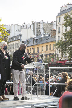 Numerous elected officials and members of civil society took part in the mobilisation. Paris 18/10/2020. Photograph by Pablo Porlan / Hans Lucas.