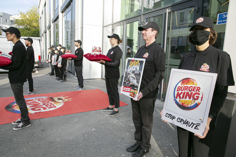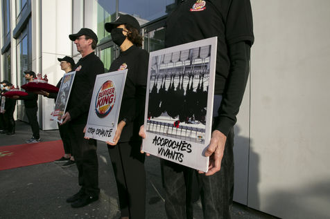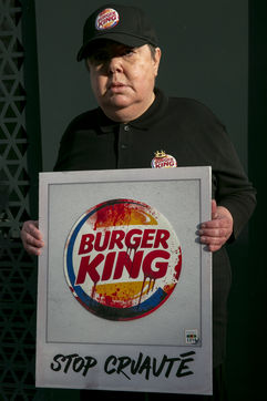 Action contre Burger King pour dénoncer la cruauté de leurs pratiques avec les animaux. Photographies de Pablo Porlan/ Hans Lucas.